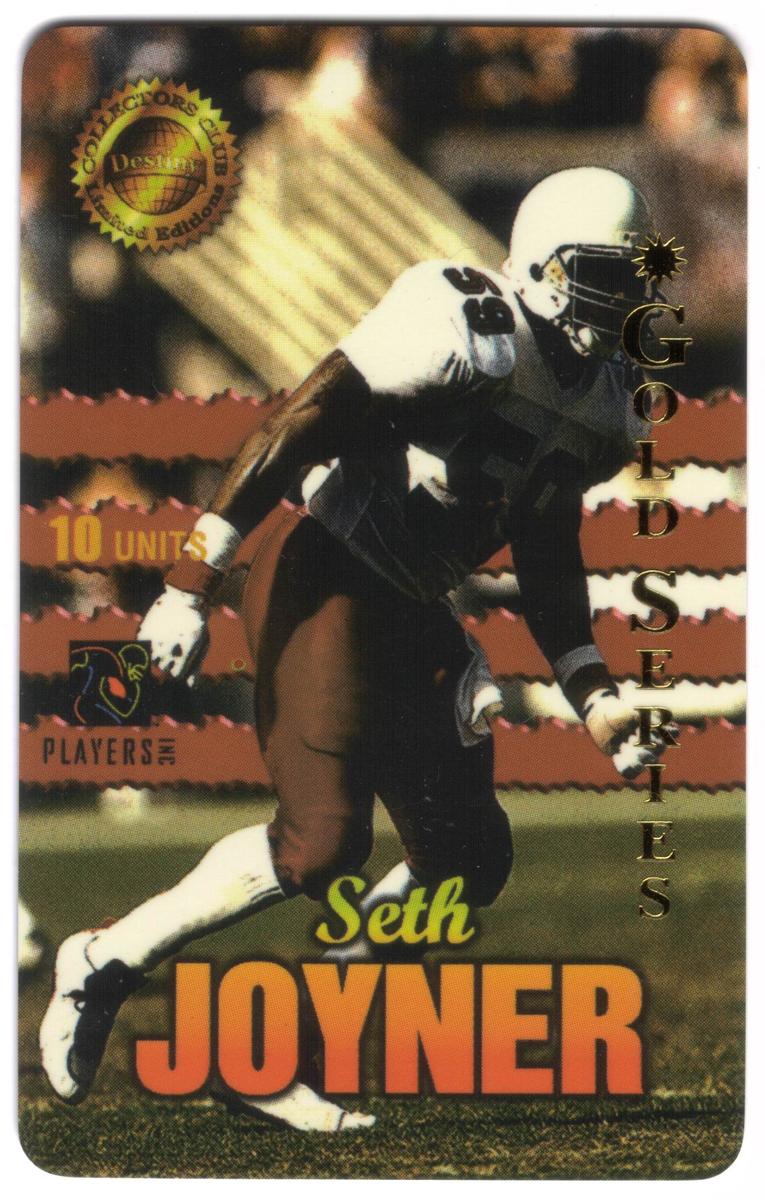 This card is issued by Destiny Telecomm and is marked as "Used." It vividly celebrates an accomplished football player within the context of the NFL, showcasing both his team affiliation and positional role on the field.
