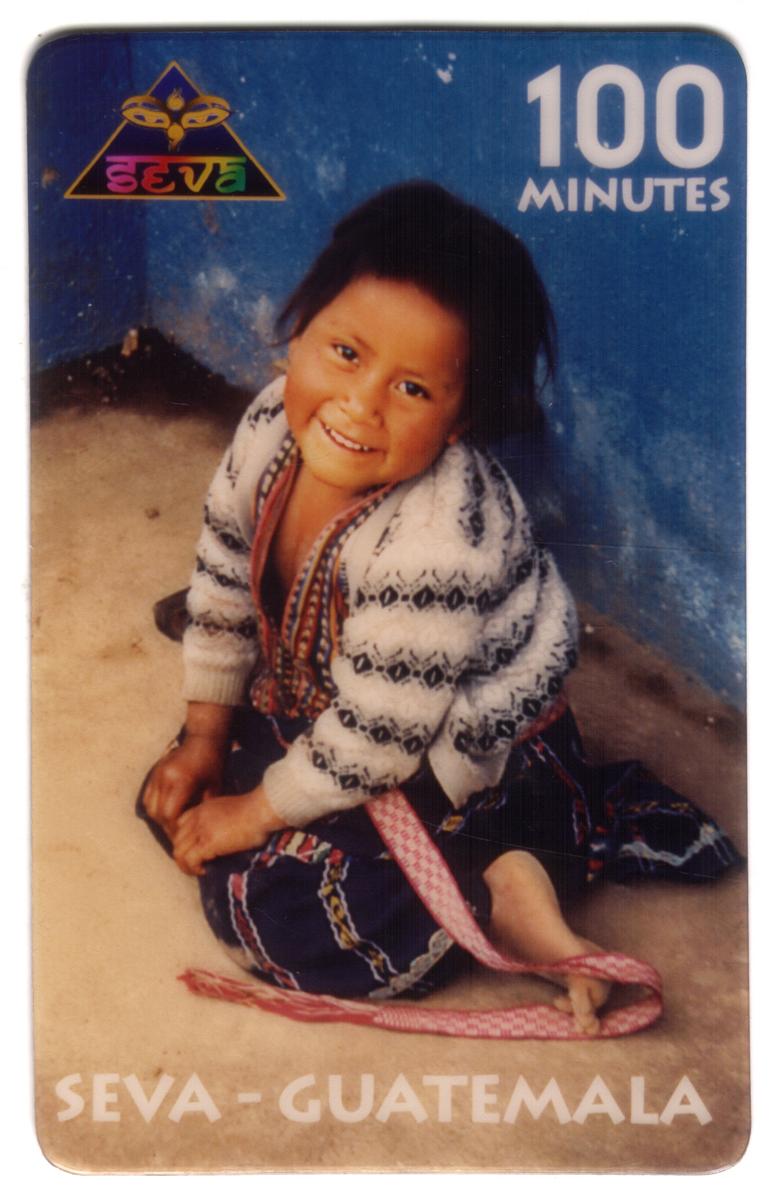 This collectible phone card features the Seva Foundation, an organization known for its work involving doctors, professors, and social activists dedicated to relieving suffering and building communities. The card highlights efforts connected to Guatemala and Mexico, with a focus on diabetes and children’s health. The design includes the Seva Foundation logo prominently displayed, reinforcing the charitable mission.