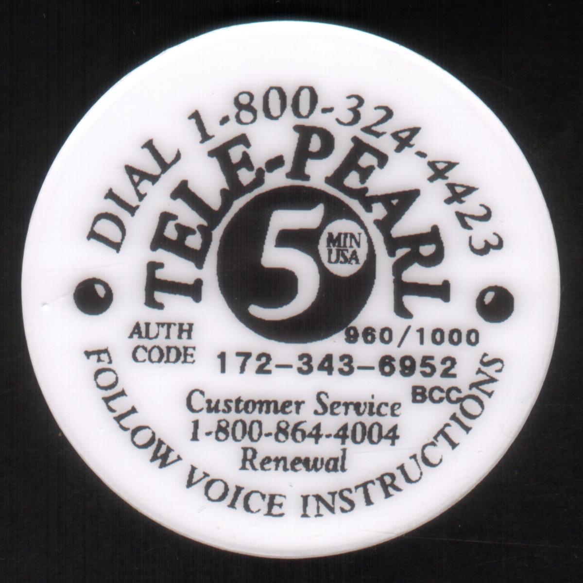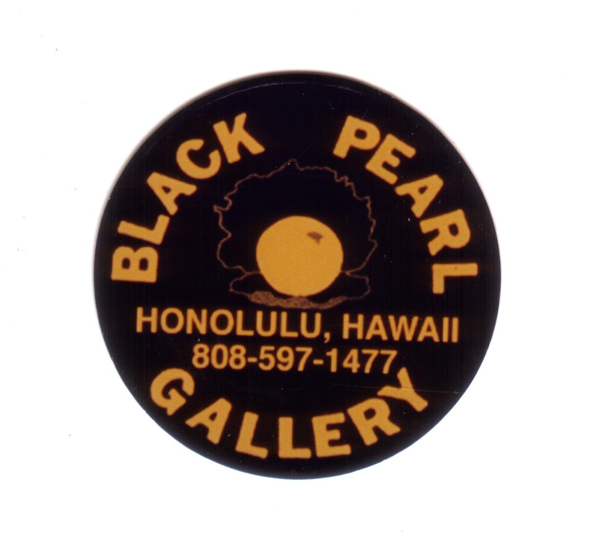This item is associated with the Tele-Pearl 5M Black Pearl Gallery Hawaii and North American telephone services, indicating the card's purpose connected to phone or telecommunications retail selling. The overall look combines logos, trademarks, and retail information for the Black Pearl Gallery in Honolulu.