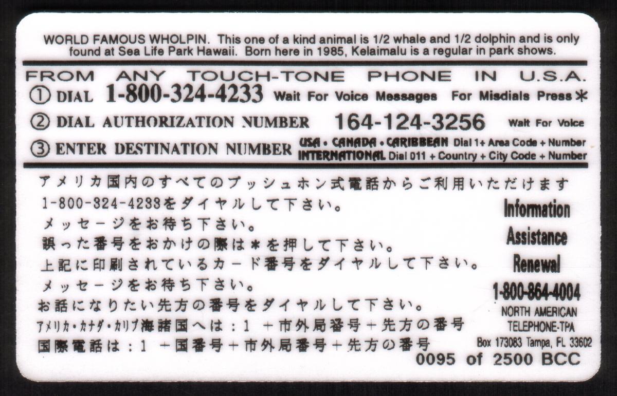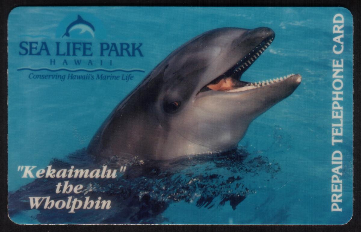 Hawaii marine life collectible featuring a wholphin at Sea Life Park Hawaii, highlighting conservation, with practical prepaid phone card functionality. |