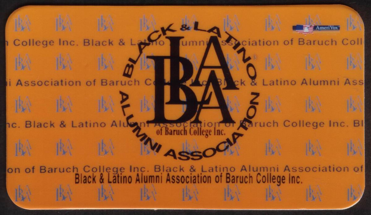 This card serves as a collectible item highlighting the connection and representation of students of color from Baruch College, specifically alumni who identify as Black and Latino. It reflects the association's identity and affiliation with Baruch College as part of the larger CUNY network.