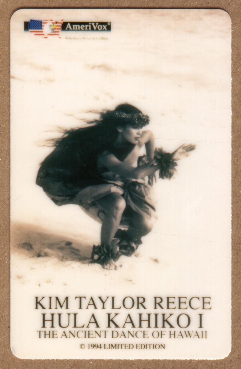 This card is issued by AmeriVox and celebrates both the artistry of Kim Taylor Reeceās photography and Hawaiian cultural expression. It is a collectible phone card designed for enthusiasts of photographic and artistic themes, presenting a vivid visual tribute to Hawaiian heritage and dance.