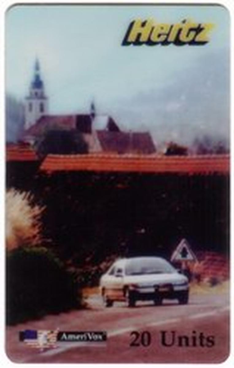 This card serves as a collectible item within the travel and transportation category, emphasizing its connection to Hertz car rentals and related telecommunication services. The presence of a detailed access phone number suggests its use in customer support or service activation for rental vehicles through AmeriVox and ATW networks.