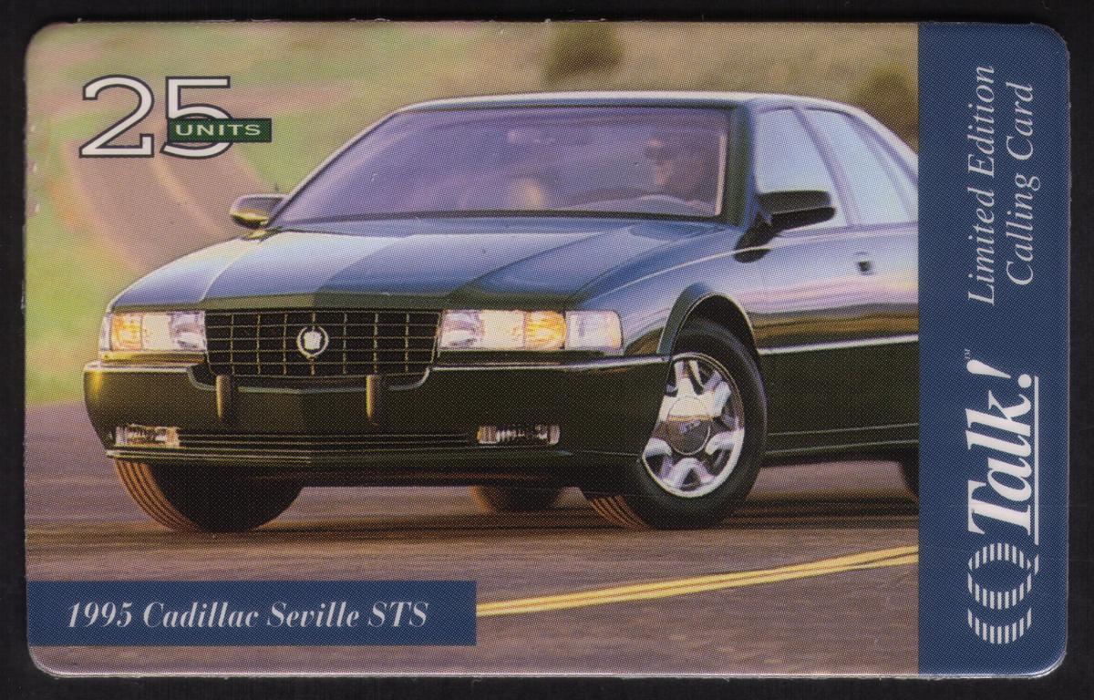 The overall presentation of the card highlights the significance of the 1995 Cadillac Seville STS as a symbol of transportation and automotive excellence. The composition combines detailed imagery with clear textual elements to create a collectible centered on the iconic Cadillac model within the context of telecommunication services.