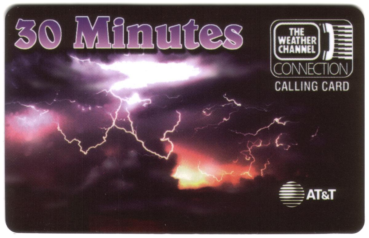The card includes branding elements tied to The Weather Channel and AT&T. The Weather Channel Connection & Logo is displayed prominently on the card, alongside the AT&T MultiQuest Services logo. Both logos are clear and distinct, reinforcing the card’s association with weather-related services and telecommunications. The AT&T logo features its recognizable globe design, which contrasts against the dark background of the storm scene.