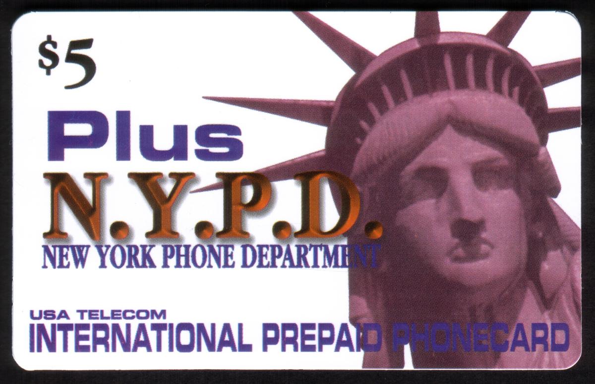 This card represents a collectible piece connected to American history and telecommunications, incorporating the famed Statue of Liberty and references to the NYPD, emphasizing its connection to New York City landmarks and Americana.