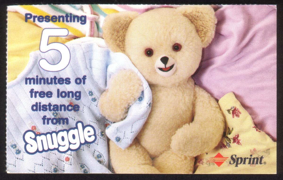 This promotional card is tied to a branded collaboration between Snuggle and Sprint, blending the imagery of a well-known household product with telecommunications branding in a visually clean and simple layout. The overall design maintains a soft, approachable look consistent with the Snuggle brand’s identity.
