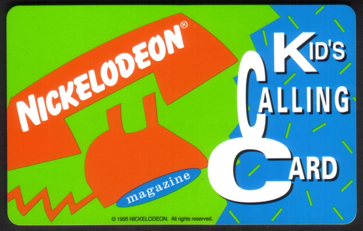 At the bottom edge of the card, a fine black strip displays the copyright notice: "© 1995 NICKELODEON. All rights reserved." This phone card was issued as part of a promotional collaboration connected to Nickelodeon Magazine and identifies itself as a kid-focused calling card under the "Kid's Calling Card" branding from Innovative Telecom.