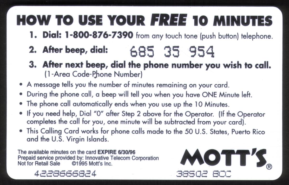 Since we have the world's largest inventory of USA phonecards for collectors, you will not necessarily receive the identical serial/batch/PIN number that we have scanned/pictured.