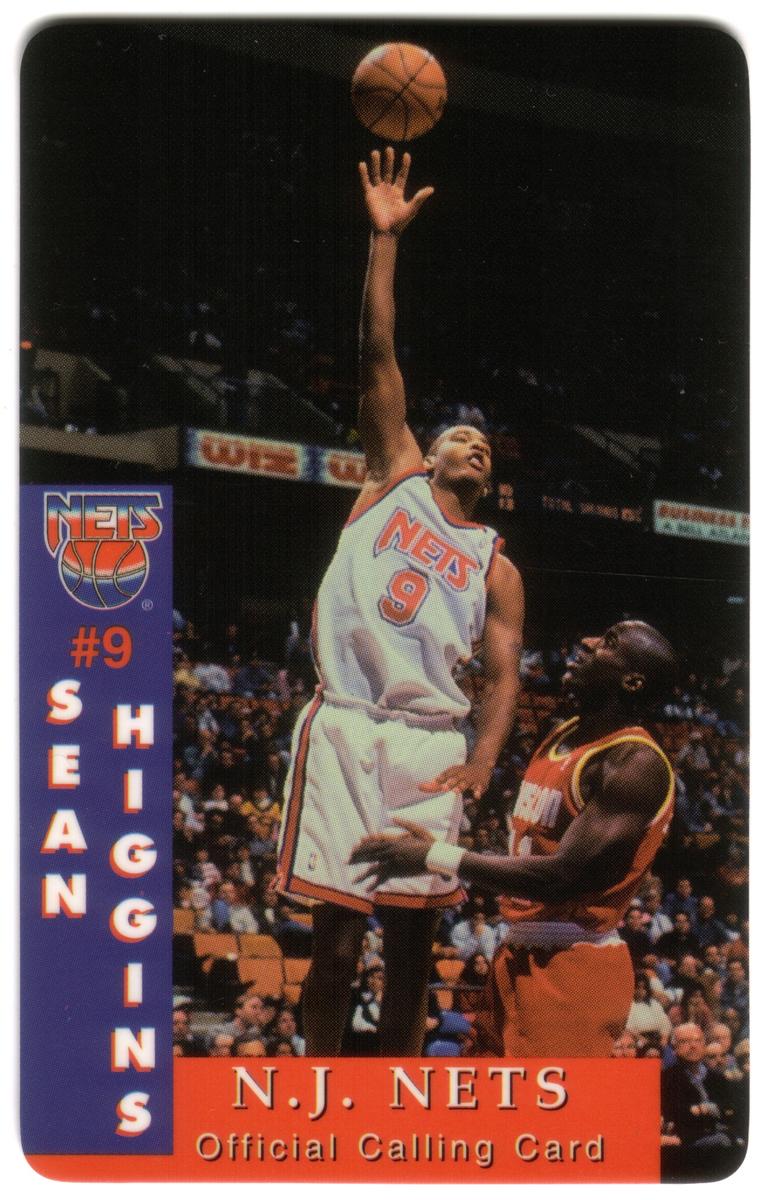 This phone card serves as a collectible item for fans of basketball, specifically those interested in the New Jersey Nets and Sean Higgins. It blends sports enthusiasm with telecommunications product design, making it a unique piece for collectors and sports memorabilia enthusiasts.