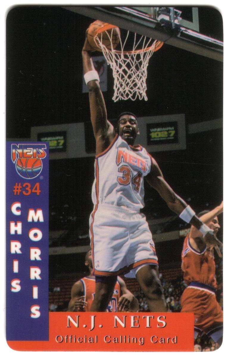 This card is part of a series related to the New Jersey Nets and their players. It is intended for collectors interested in basketball memorabilia, specifically featuring notable players like Chris Morris. The combination of team branding, the player’s image, and corporate sponsorship identifies it as a valuable collectible for fans of the New Jersey Nets.