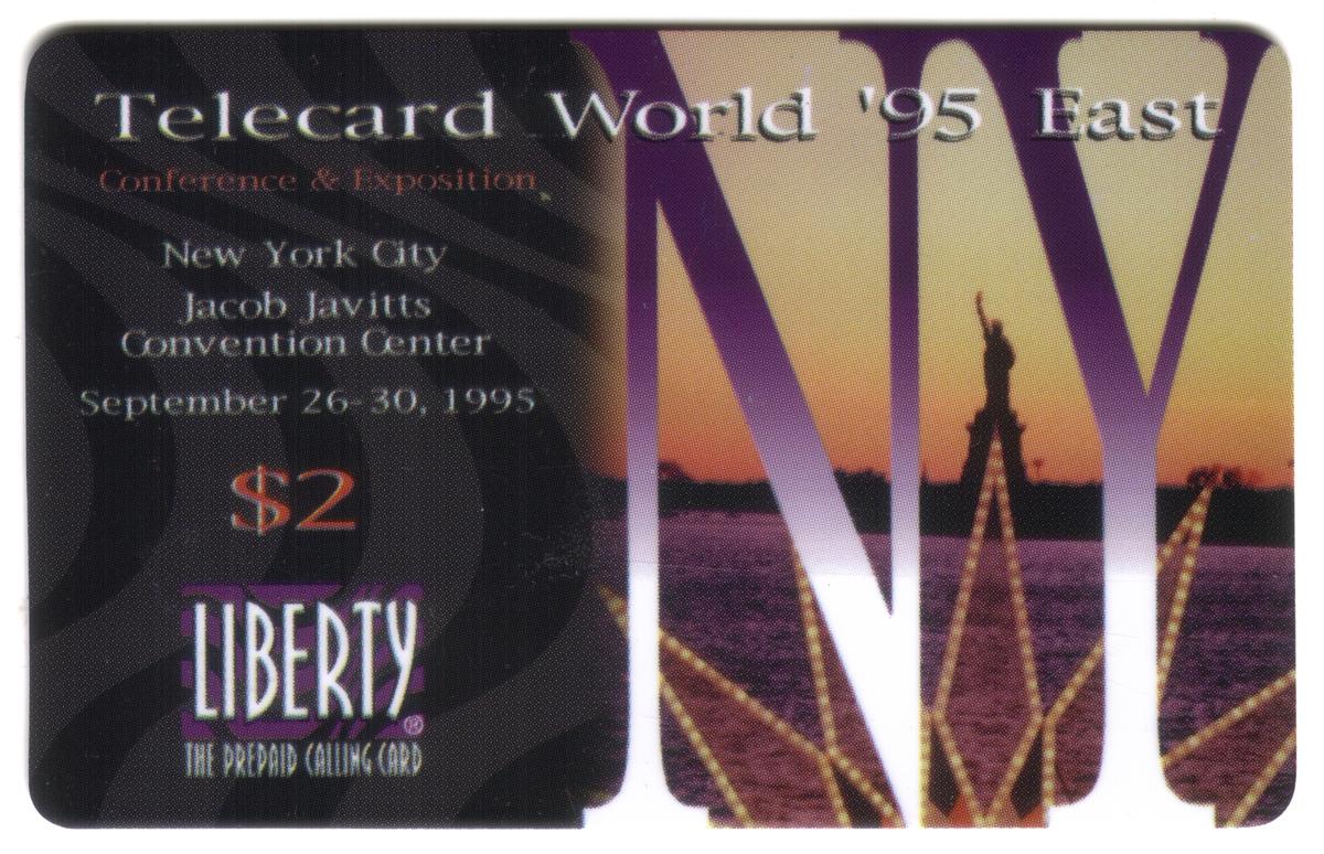 Overall, this is a $2 collectible phone card issued specifically for Telecard World ’95 held at the Jacob Javitz Convention Center in New York City, featuring the Statue of Liberty and produced under the Quest Group Internatl name. The card captures both the event’s location and its theme centered on phone card collecting and telephony exhibitions.