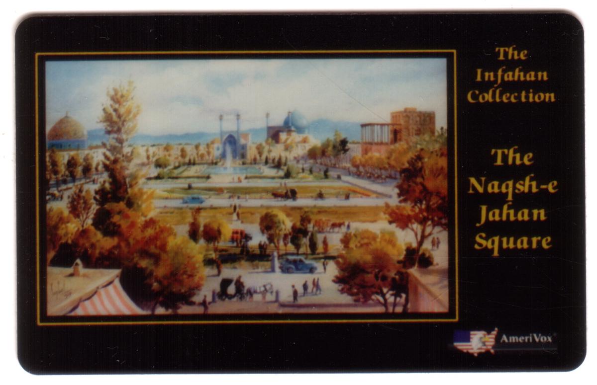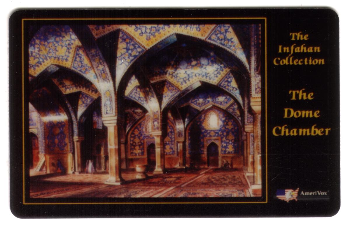 These four collectible phone cards are part of "The Infahan Collection" produced by AmeriVox. Each card features distinct artistic images related to Persian culture and historical architecture, along with detailed lettering in gold on the right side identifying each card's theme within the collection.