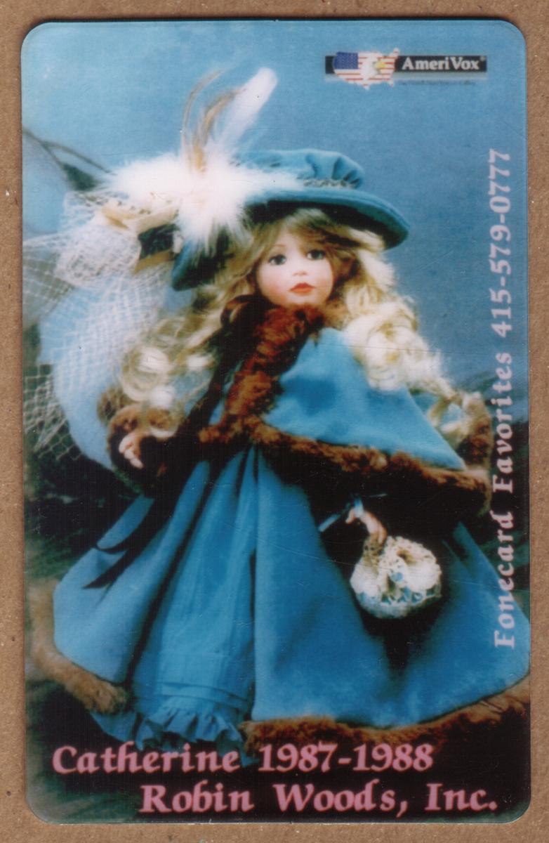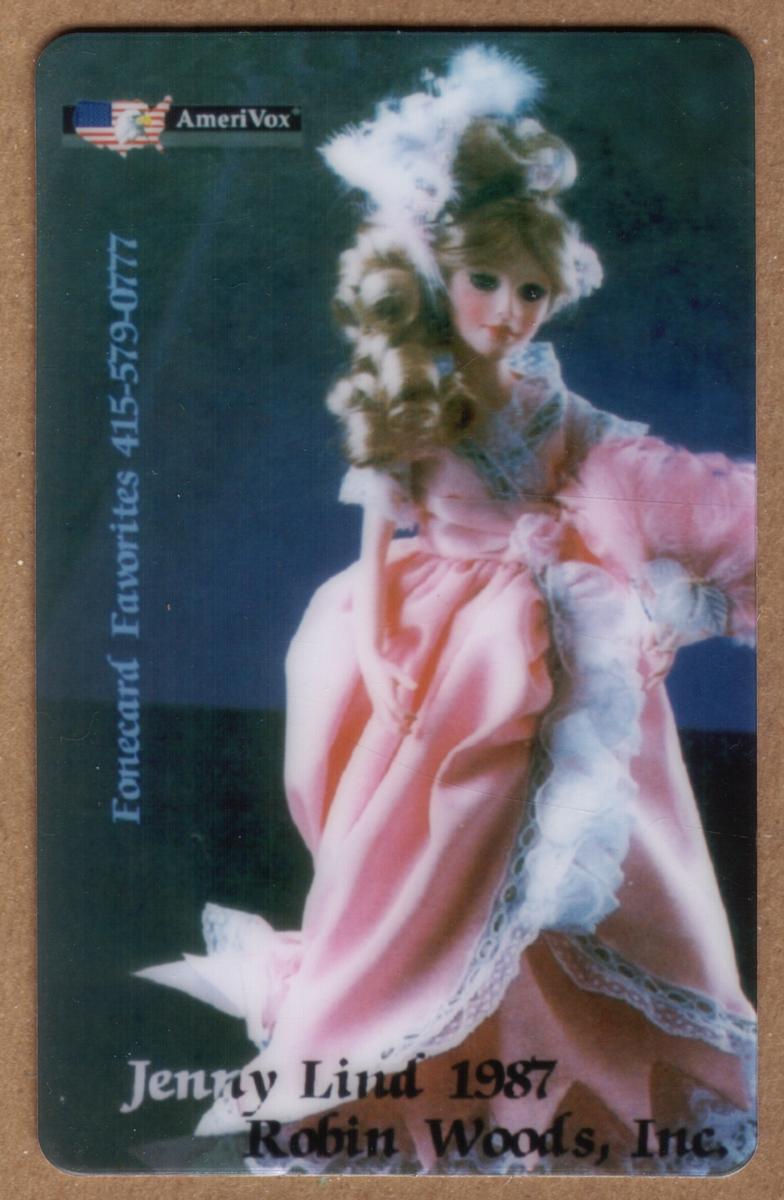 Each of these collectible cards highlights the ornate costumes and delicate features of the dolls from Robin Woods, Inc., while clearly branding them as part of AmeriVox’s Fonecard Favorites collection.