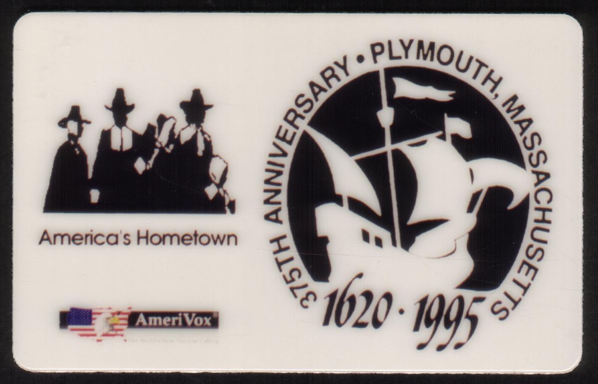 Produced as a proof by AmeriVox, the card combines historical significance with a focus on nautical transportation. It serves as a tribute to America’s hometown Plymouth, Massachusetts, and the legacy of the Pilgrims who arrived on the Mayflower ship. The card does not show any other names or logos beyond those related to the anniversary and AmeriVox.