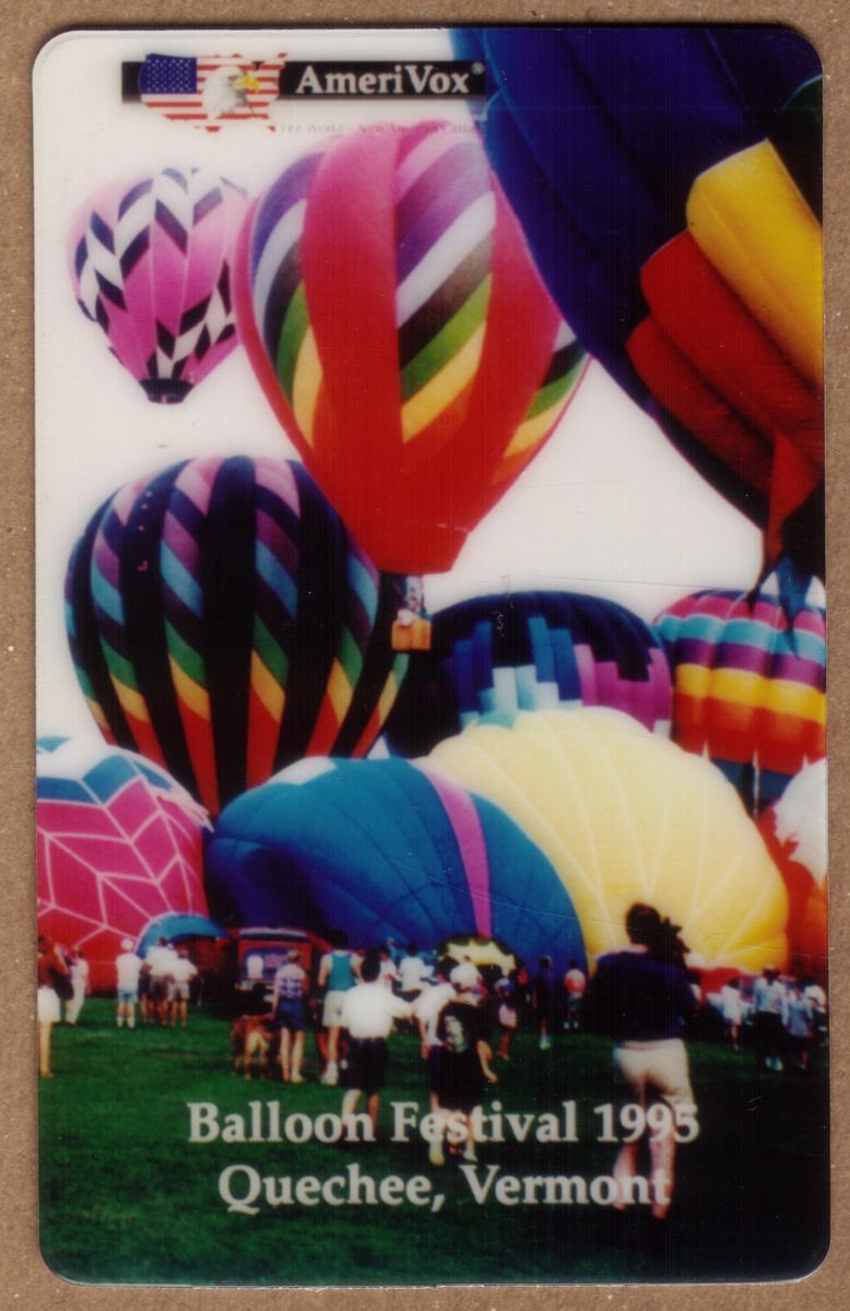 Overall, the phone card highlights the 1995 Hot Air Balloon Festival in Quechee, Vermont, showcasing the colorful display of balloons and the enthusiastic public attendance in support of this sports event.