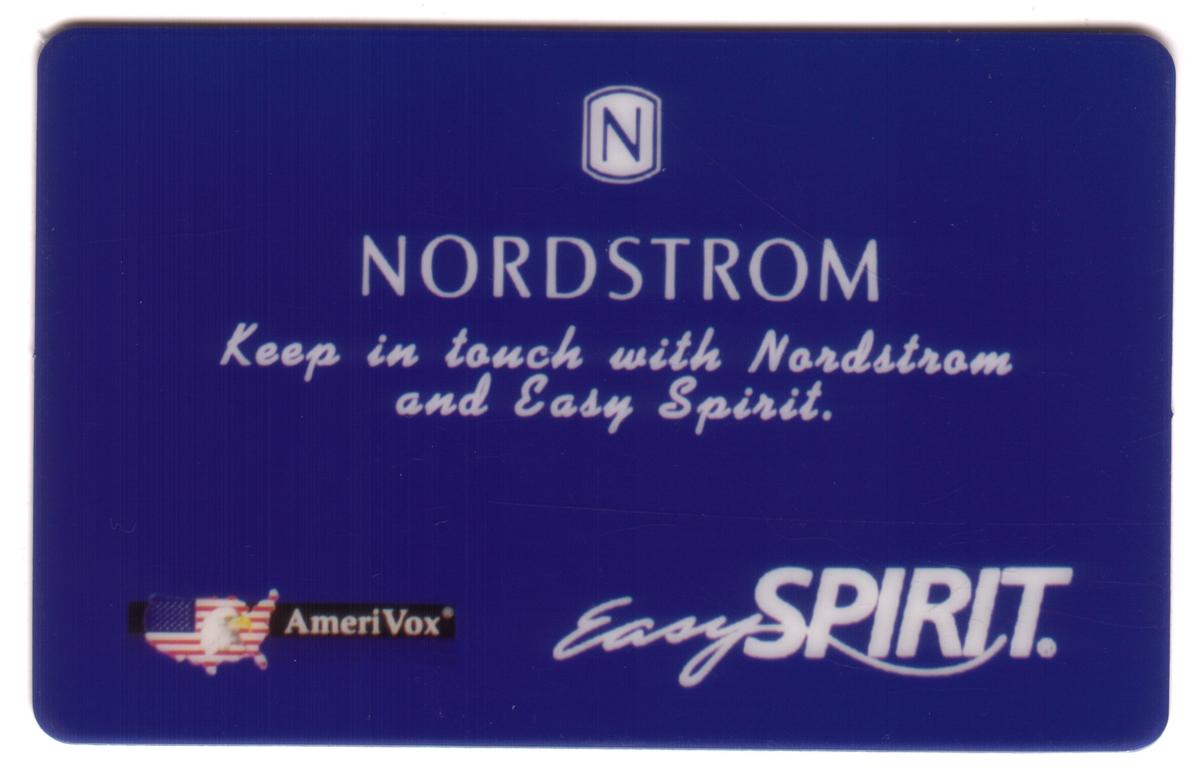 The color scheme of the card includes a blue background with the phrase "Keep in touch with Nordstrom and Easy Spirit" written in blue text, reinforcing the promotional nature tied to these well-known retail names. The layout is clean and straightforward, focusing on brand identity without extraneous imagery or decoration.
