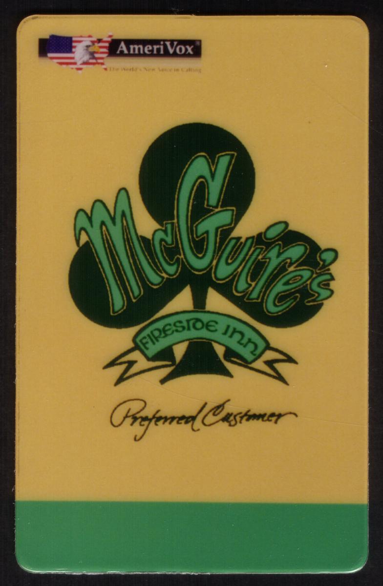 This item was produced by AmeriVox and is linked to the Pittsburgh, Pennsylvania area through its references to McGuire’s Fireside Inn and the Steelers logo. The card serves as a promotional collectible likely intended for distribution or marketing within pubs, bars, or restaurants, connecting the sports culture with local hospitality venues.