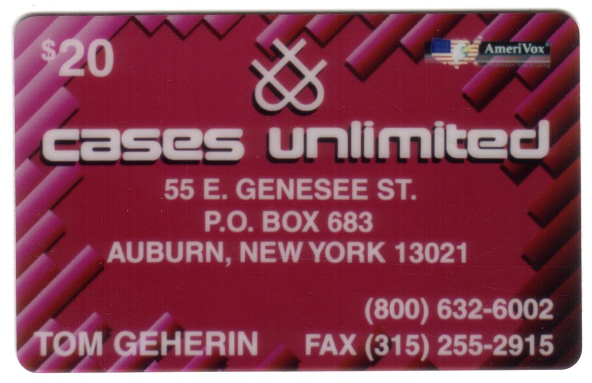 The card also bears the Cases Unlimited branding, a company based in Auburn, New York known for collectible card supplies and related products. The visible text on the card clearly identifies it as a promotional item without any denomination or numbering on a helmet or other objects.