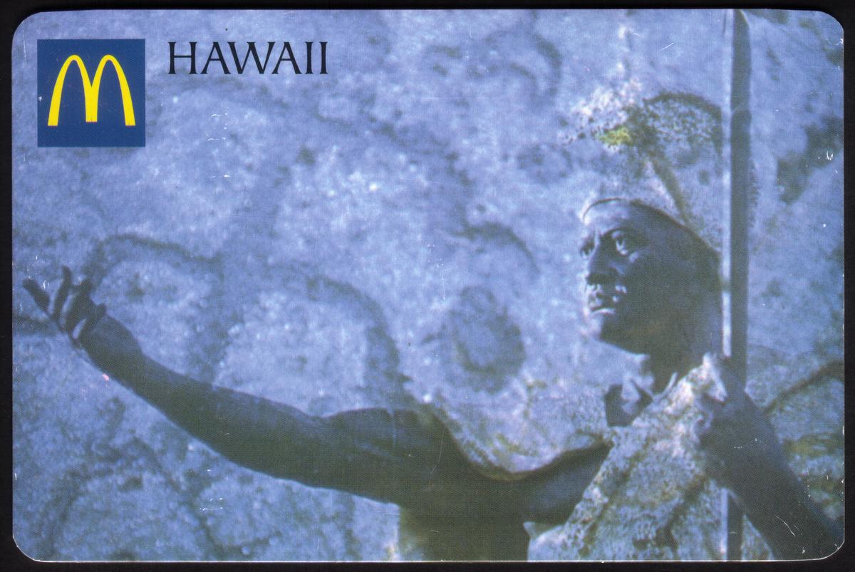 This collectible interactive telecard features branding from McDonald’s, prominently displaying the Golden Arches logo in bright yellow against a blue background. The card highlights McDonald’s presence in the Hawaiian Islands, incorporating a tropical theme that reflects the region. The McDonald's name is clearly visible in red text beneath the Golden Arches, emphasizing the fast food chain’s identity.