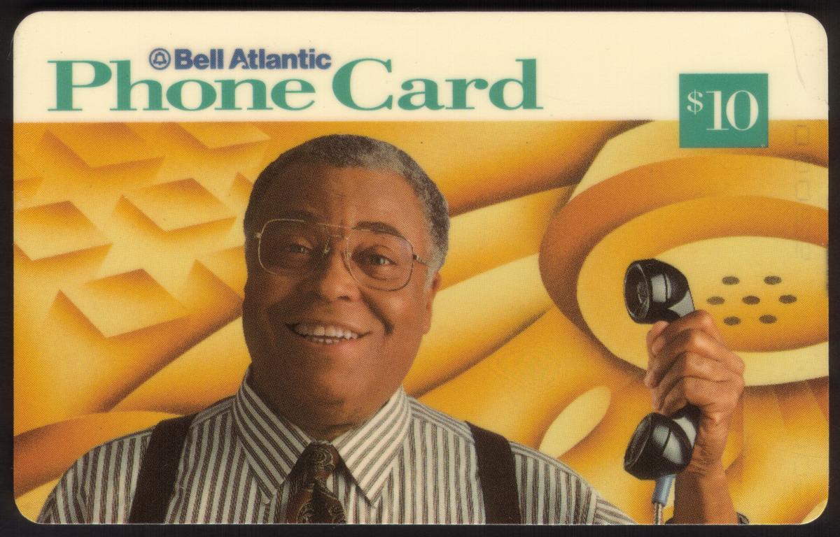 The simplicity of the design highlights James Earl Jones as the focal point while integrating corporate trademarks. The card is part of a series of promotional phone cards featuring celebrities associated with Bell Atlantic. The visual and textual elements are clear and easy to read, maintaining a professional and polished presentation.