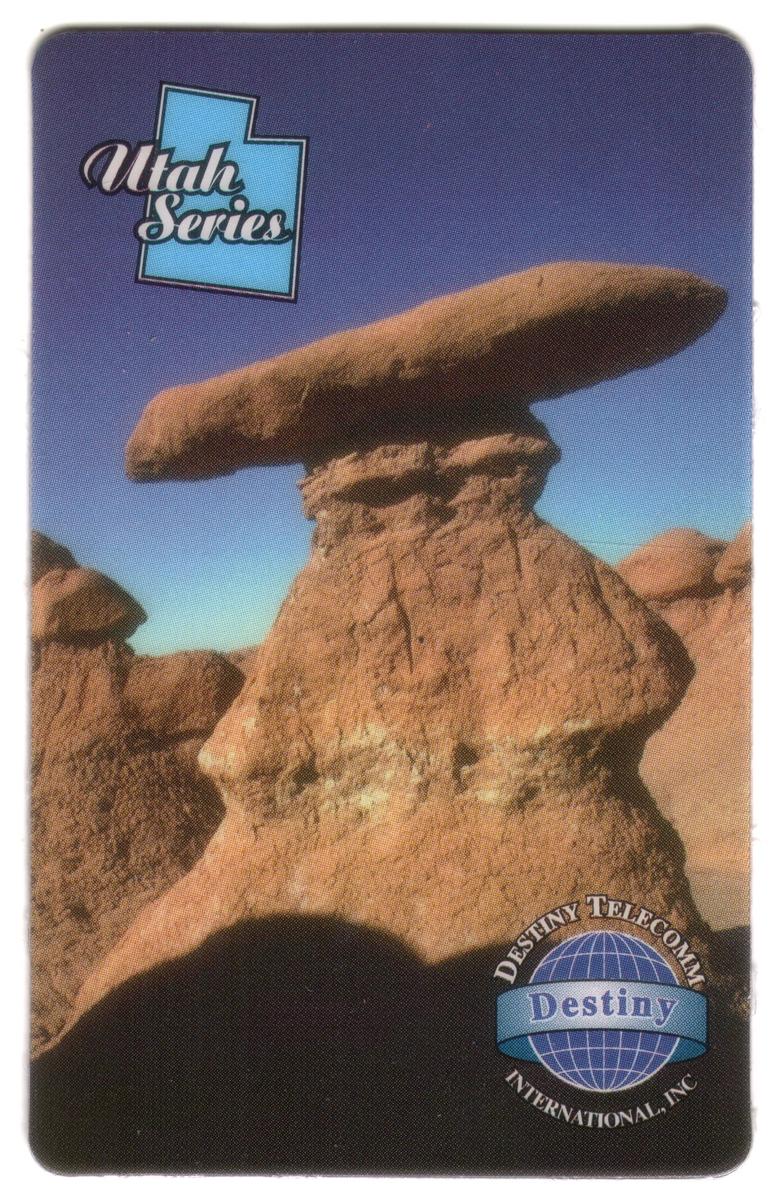 The phone card is part of the Americana American States Series and specifically represents Utah. The card is issued by Destiny Telecomm, as indicated on the front, with relevant markings consistent with collectible phone cards. The design emphasizes the natural beauty and iconic scenery associated with the state of Utah.