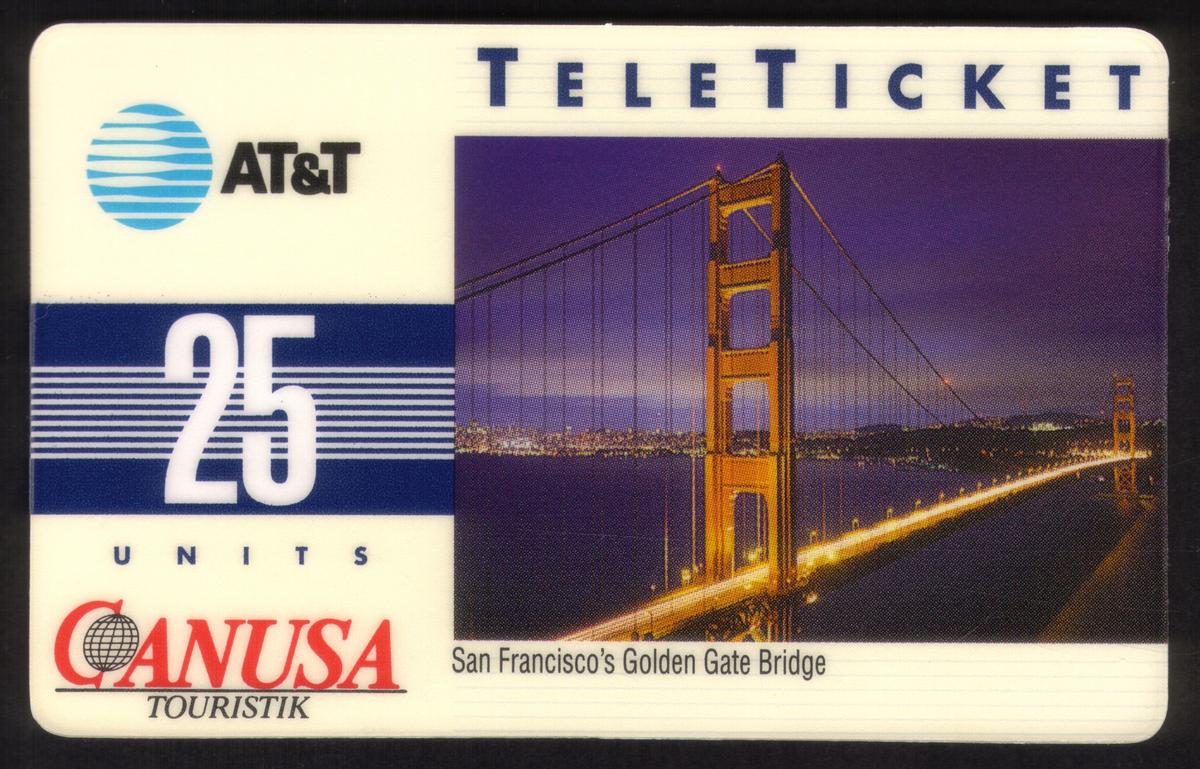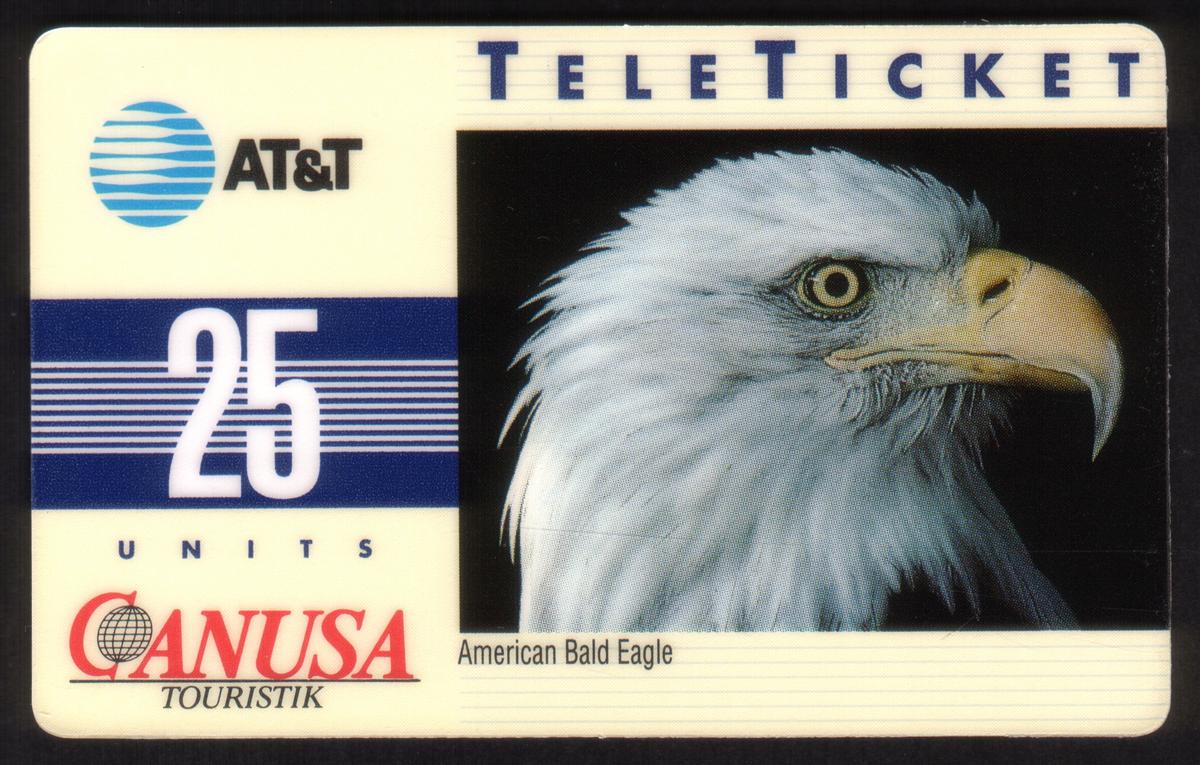 Together, these four AT&T Teleticket cards celebrate recognizable symbols of Americana, capturing major landmarks from New York City and San Francisco along with the national bird. The Canusa Touristik branding and unit value are consistently displayed on the lower left portion of each card, supporting a cohesive theme throughout the set.