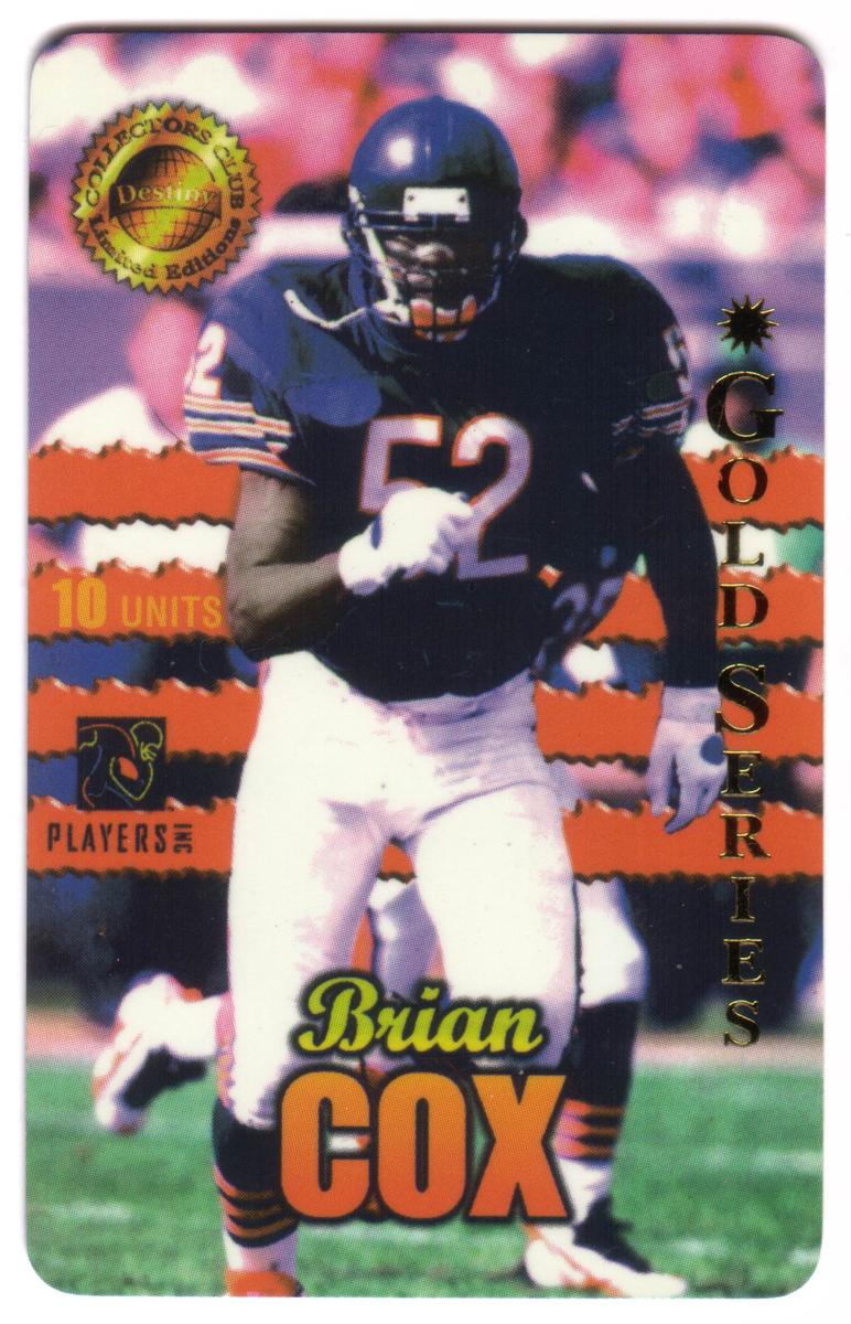 Overall, this card is a piece of NFL memorabilia focusing on Brian Cox, celebrating his role as a linebacker for Chicago. It is a limited edition collectible aimed at fans and collectors of football player cards within the National Football League.