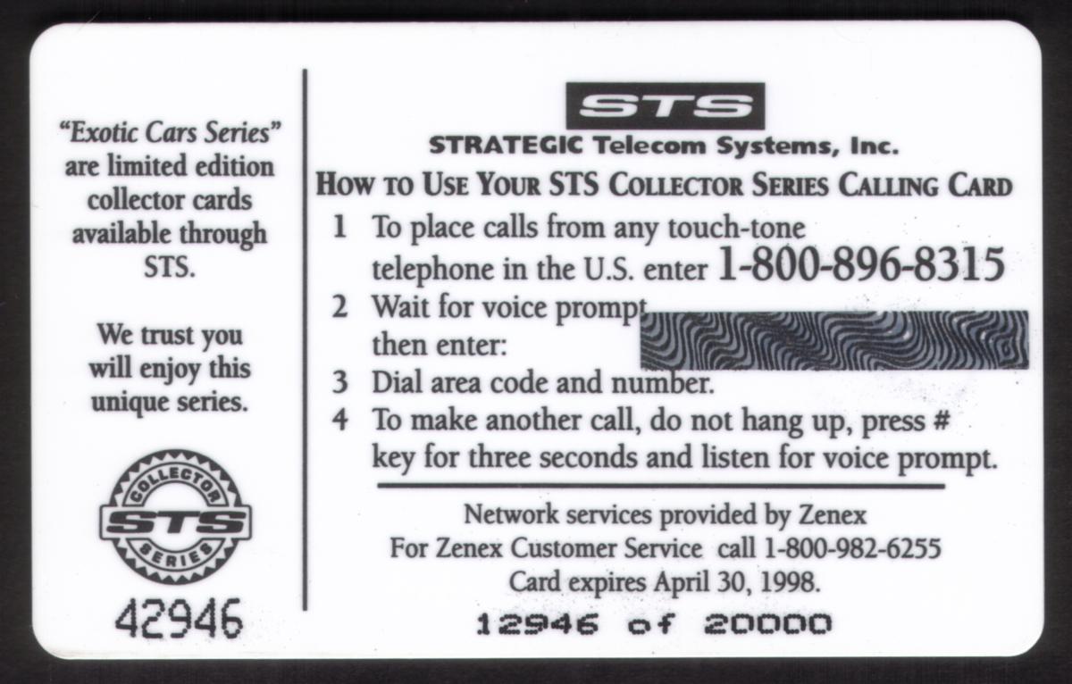 Since we have the world's largest inventory of USA phonecards for collectors, you will not necessarily receive the identical serial/batch/PIN number that we have scanned/pictured.