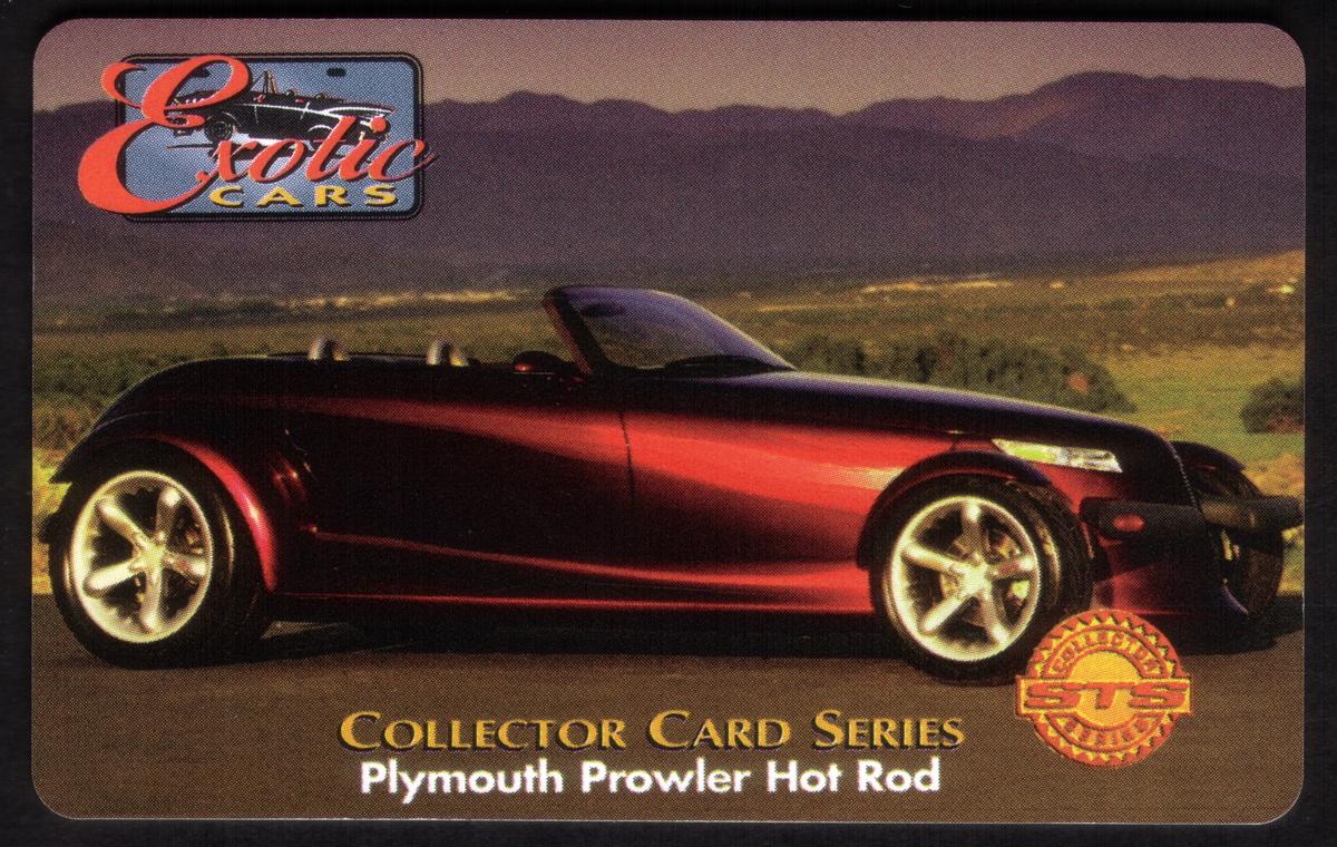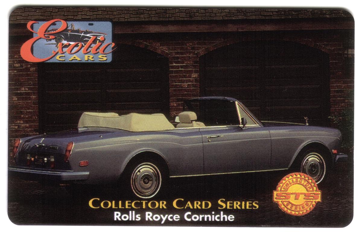 This collection features a set of twelve collectible phone cards from the Exotic Cars Collector Card Series by Strategic Telecom Sys. Each card highlights a different iconic and classic automobile model. The cards display photographic images of the cars with rich, vibrant colors and detailed backgrounds that complement the elegance and design of each vehicle. The Exotic Cars logo is positioned at the top left corner, while the Strategic Telecom Sys emblem is on the bottom right corner, emphasizing the collectible nature of the series.
