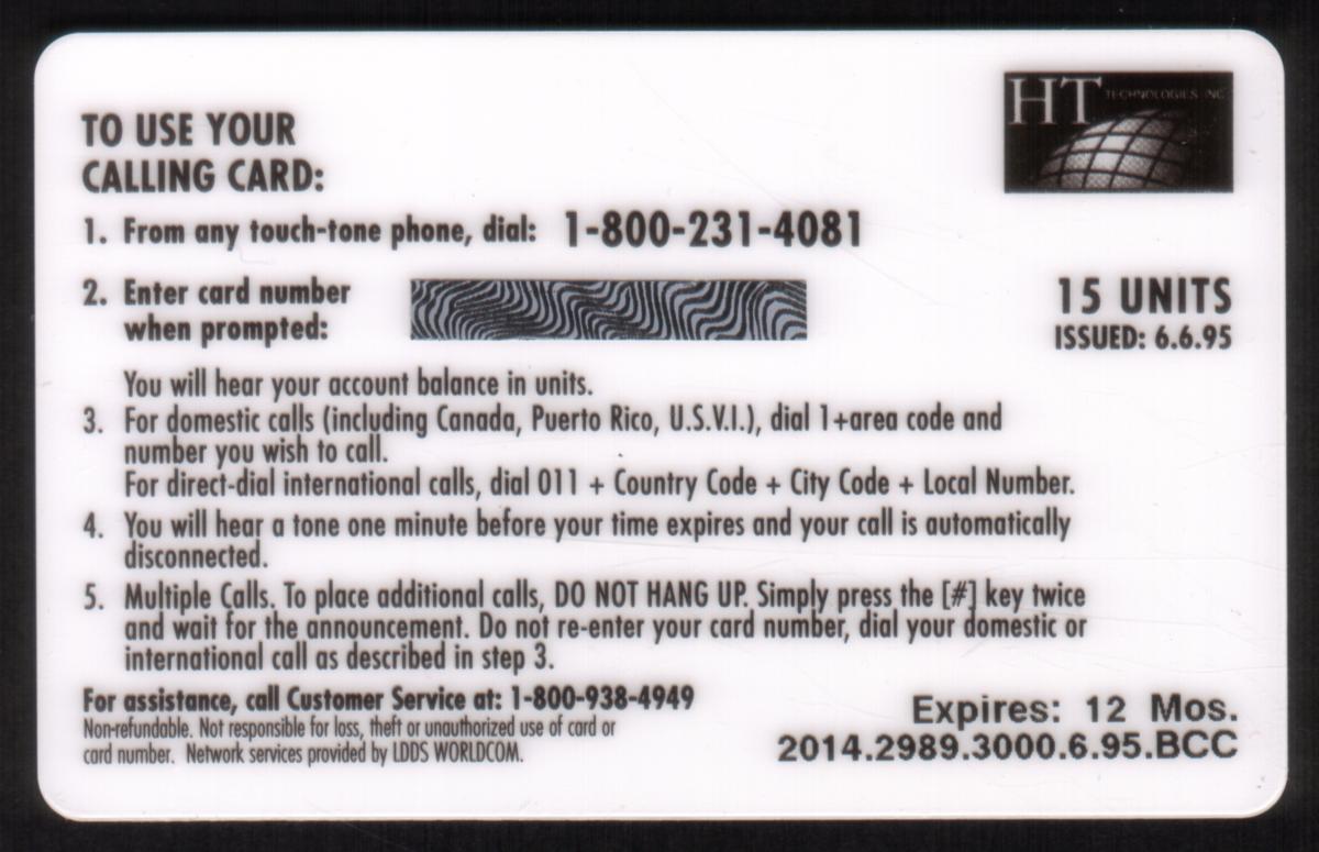 Since we have the world's largest inventory of USA phonecards for collectors, you will not necessarily receive the identical serial/batch/PIN number that we have scanned/pictured.