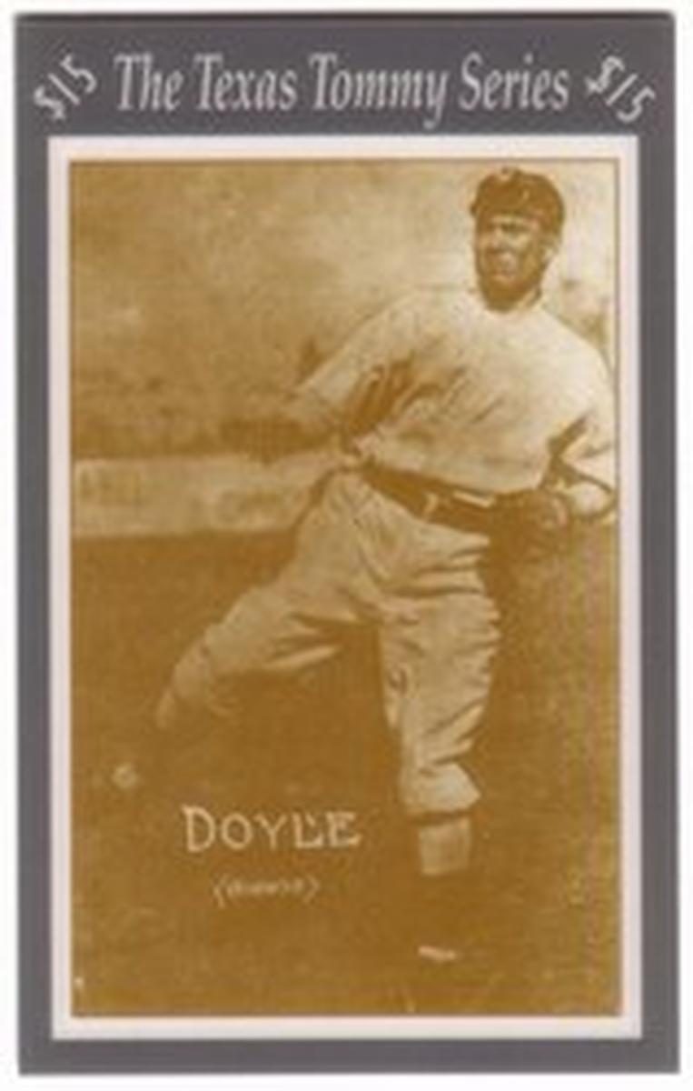 The collectible phone card displays Larry Doyle, known as "Laughing Larry," a baseball player for the New York Giants. The card is part of the Texas Tommy Baseball Series and features Doyle’s full name, Lawrence Joseph Doyle, prominently. The design evokes the vintage style of 1914 baseball, referencing the Texas Tommy Type I power swing of that era, which is connected to the player’s legacy. The New York Giants logo appears, tying the card to this historic baseball team.