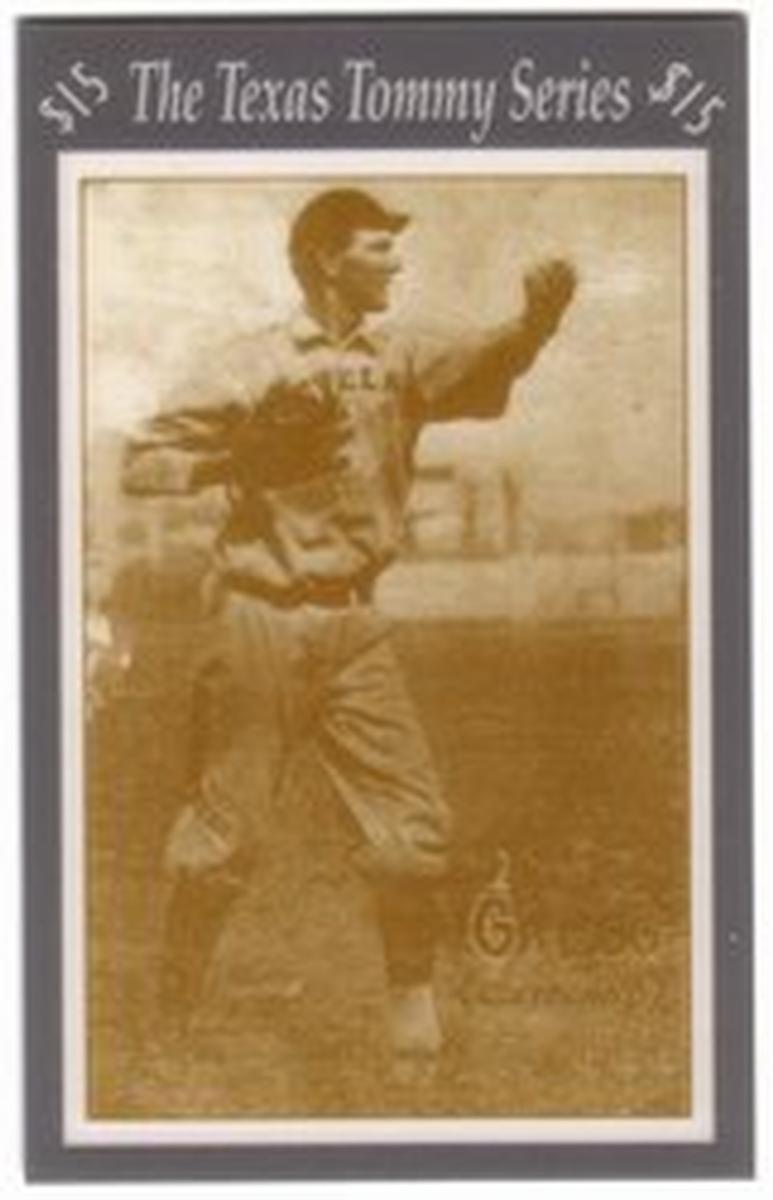 This collectible item is a Texas Tommy Baseball Series phone card featuring Vean Gregg, a historical baseball player associated with the Cleveland Naps. The front of the card prominently displays the name "Sylveanus Augustus Gregg," which is Vean Gregg’s full name, along with his team designation, "Cleveland Naps." The card includes the text "Texas Tommy Type I of 1914," connecting it to the era and style of early 20th-century baseball.