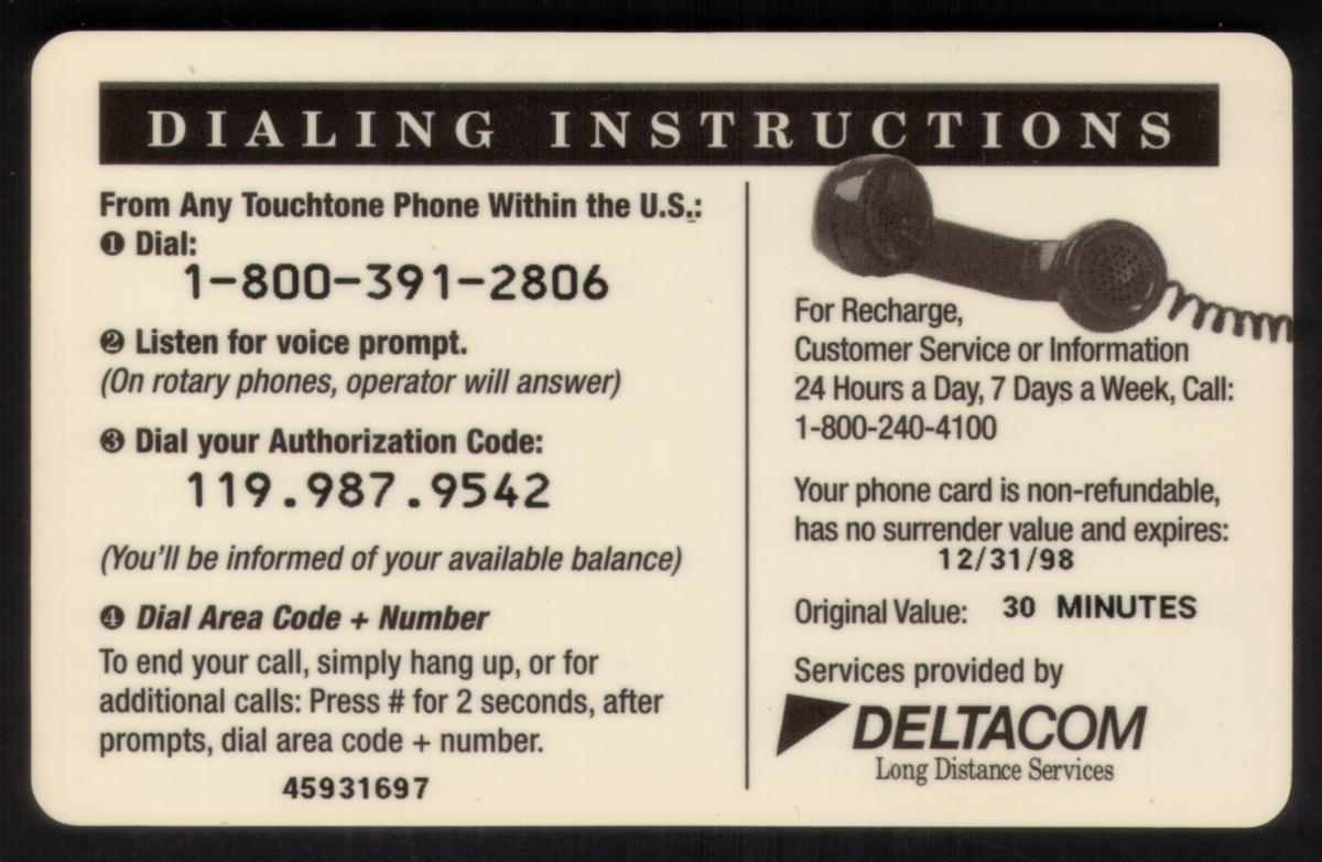Since we have the world's largest inventory of USA phonecards for collectors, you will not necessarily receive the identical serial/batch/PIN number that we have scanned/pictured.