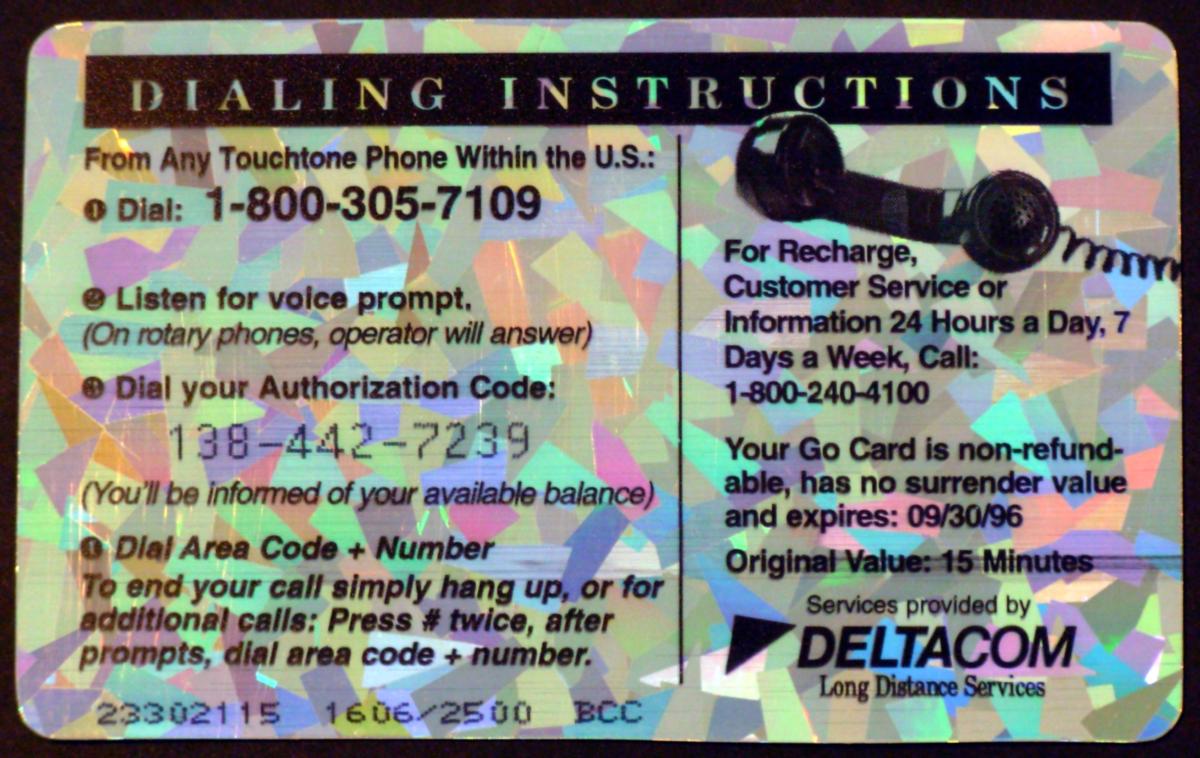 Since we have the world's largest inventory of USA phonecards for collectors, you will not necessarily receive the identical serial/batch/PIN number that we have scanned/pictured.