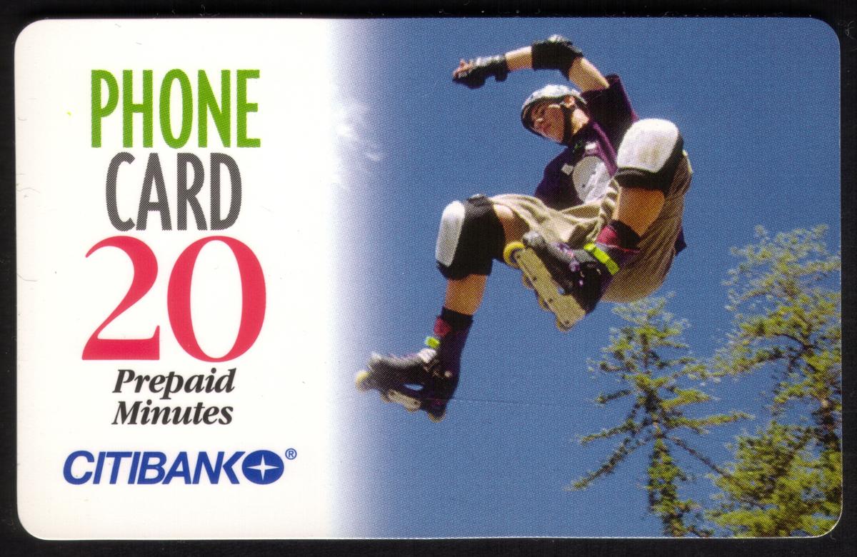 The card identifies affiliation with CardLink Services and prominently features the Citibank name, situating it within a promotional context linked to phone card collectibles. The visual and textual elements together position the card as a themed collectible celebrating rollerblading.