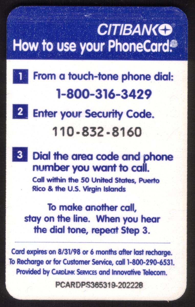 Since we have the world's largest inventory of USA phonecards for collectors, you will not necessarily receive the identical serial/batch/PIN number that we have scanned/pictured.