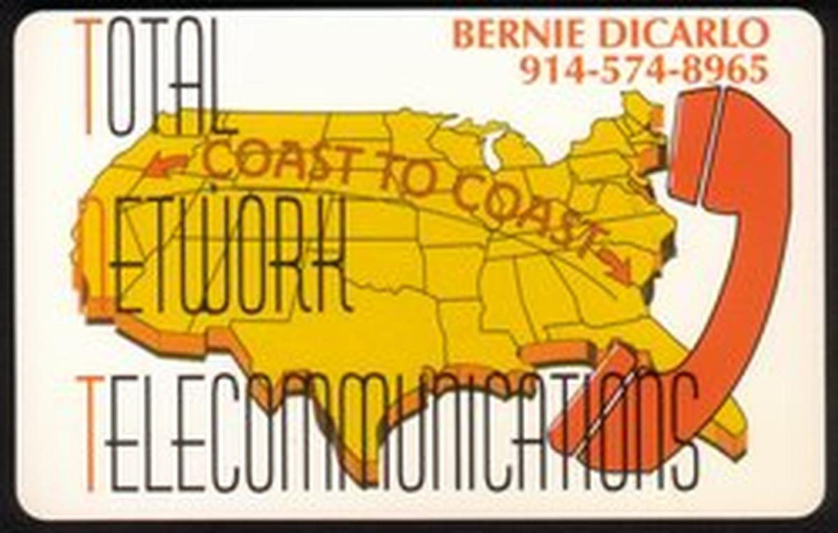 This phone card serves both a functional and promotional role, highlighting Total Network Telecom’s extensive telecommunications reach across the United States. The references to the telephone receiver, USA map, and business information make it a distinctive collectible item focused on the telecommunications industry.