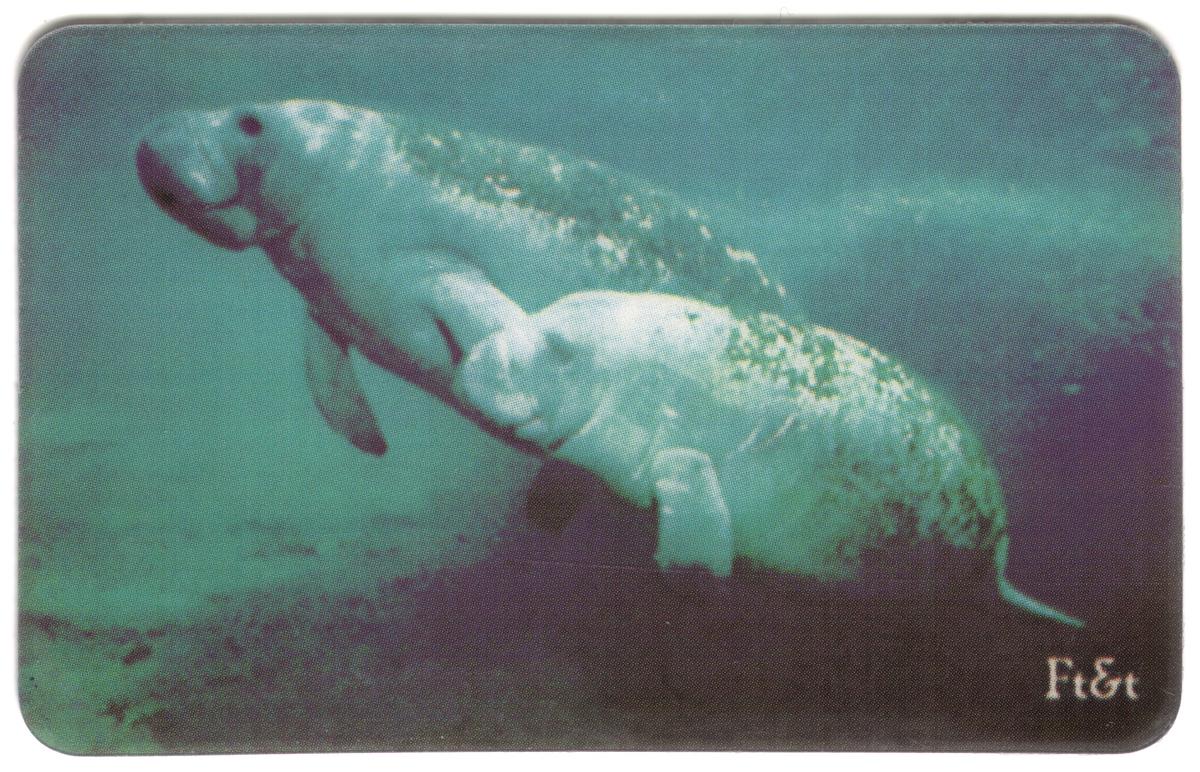 Overall, this collectible card combines environmental awareness with telecommunications branding. It serves as a tribute to the endangered manatee in Florida waters, encouraging preservation efforts while functioning as a telecard used for communication services.