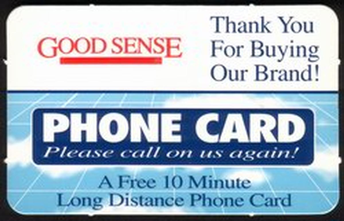 This collectible phone card features branding for "Good Sense Brand Drugs," a generic drug line associated with Perrigo. The card prominently displays the Perrigo logo, indicating the connection to this well-known pharmaceutical company. The card is a promotional item highlighting Perrigo's pain reliever products under the Good Sense Brand. The value of the card is ten million units, shown as "10m" on the front.