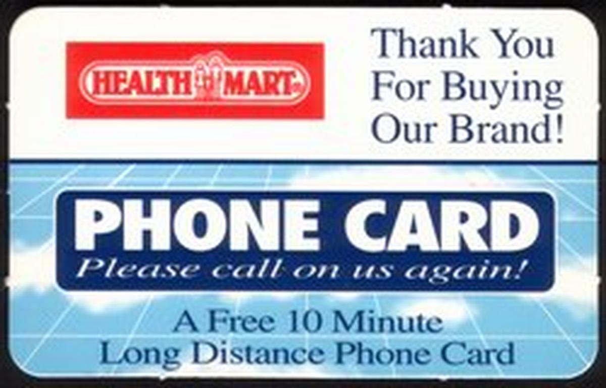 No other characters or additional imagery are present aside from the logos and text related to Health Mart, Perrigo, and Innovative Telecom. The card serves both as a collectible item and a promotional piece linking pharmaceuticals and phone card services.