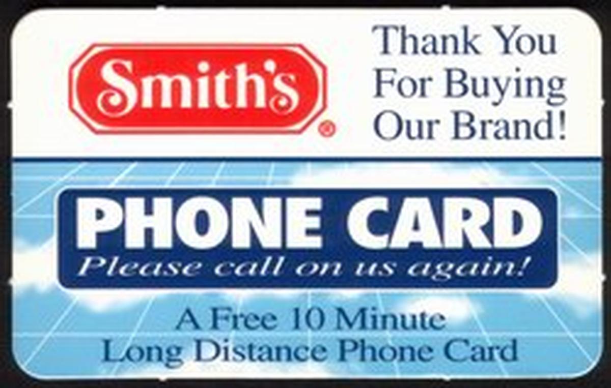 This collectible phone card features branding for Smith’s Brand Drugs and Perrigo Generic Pain Reliever. The design includes the Smith’s logo, which is set within a green oval with white text, accompanied by the words “Smith’s Brand Drugs” prominently displayed. The card promotes Perrigo Generic Pain Reliever, noted as a product associated with pharmaceuticals and drugstores. The background of the card is light with minimal decoration, emphasizing the text and logos related to the drug retailer theme.