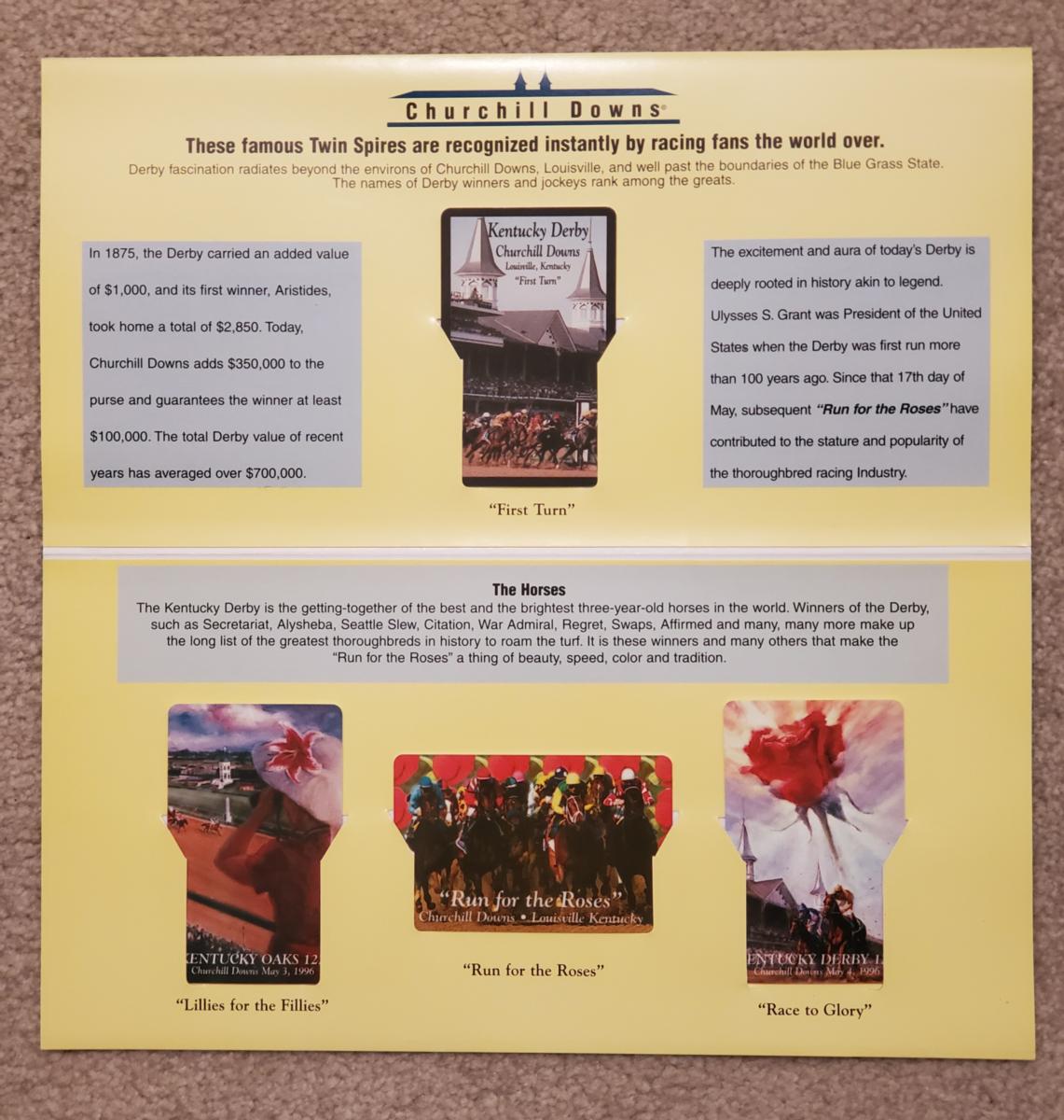 Each card reflects key visual and cultural elements tied to these prestigious horse racing events and the historic Churchill Downs racecourse. The inclusion of roses and lilies corresponds with the flowers traditionally associated with the Kentucky Derby and Kentucky Oaks.