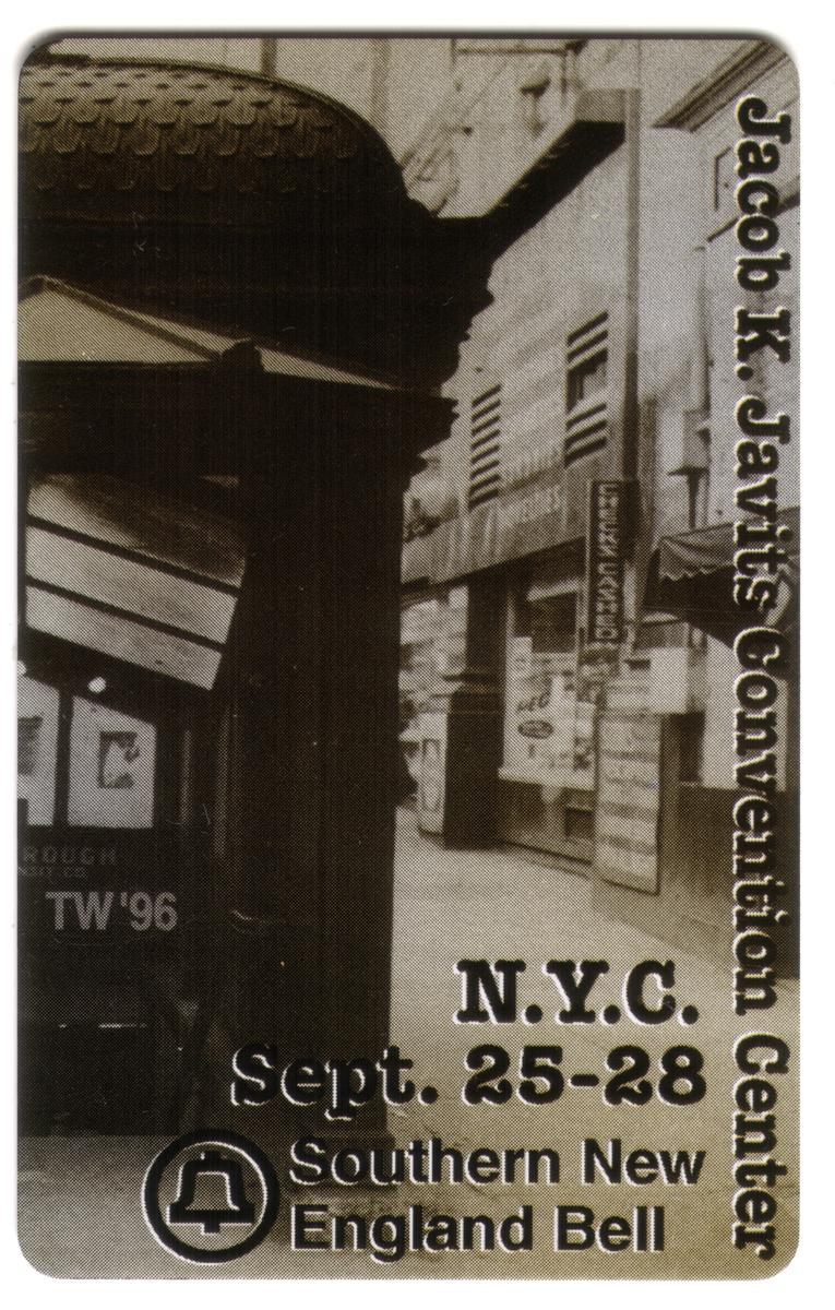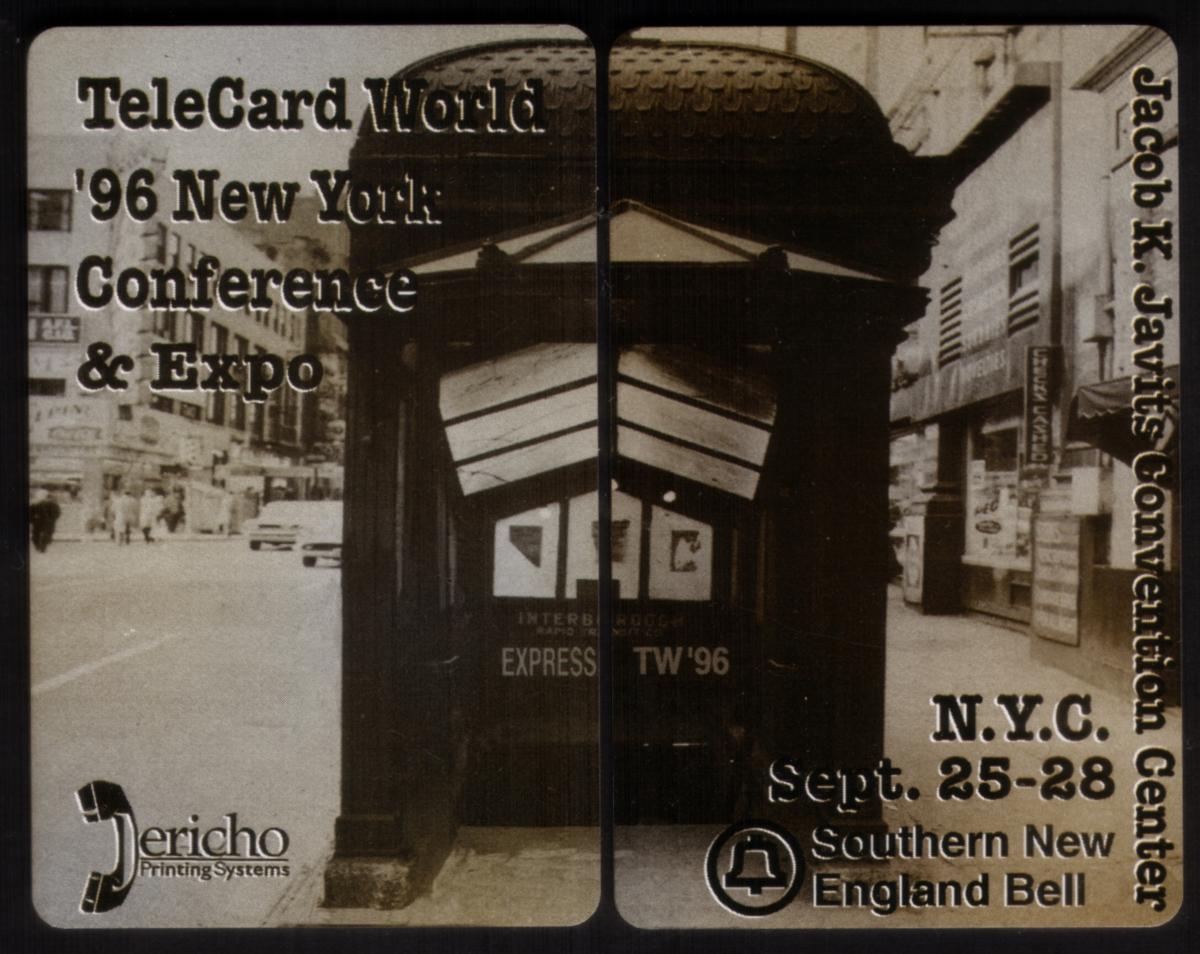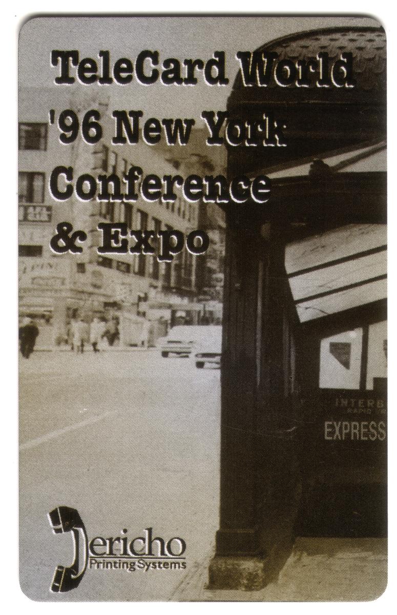 The card commemorates the TeleCard World '96 event held at the Jacob K. Javits Convention Center in New York City, an important venue for expos and shows. This is evident from the inclusion of the venue’s name and related event branding on the card. The card is a part of a two-card puzzle series depicting aspects of the New York subway system, showing detailed transport and communication elements relevant to the city. "Jerico Printing Systems" is also mentioned, indicating the printer or producer involved in creating the collectible.