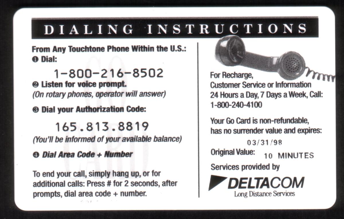 Since we have the world's largest inventory of USA phonecards for collectors, you will not necessarily receive the identical serial/batch/PIN number that we have scanned/pictured.