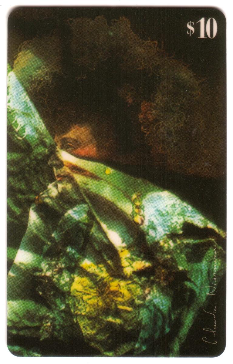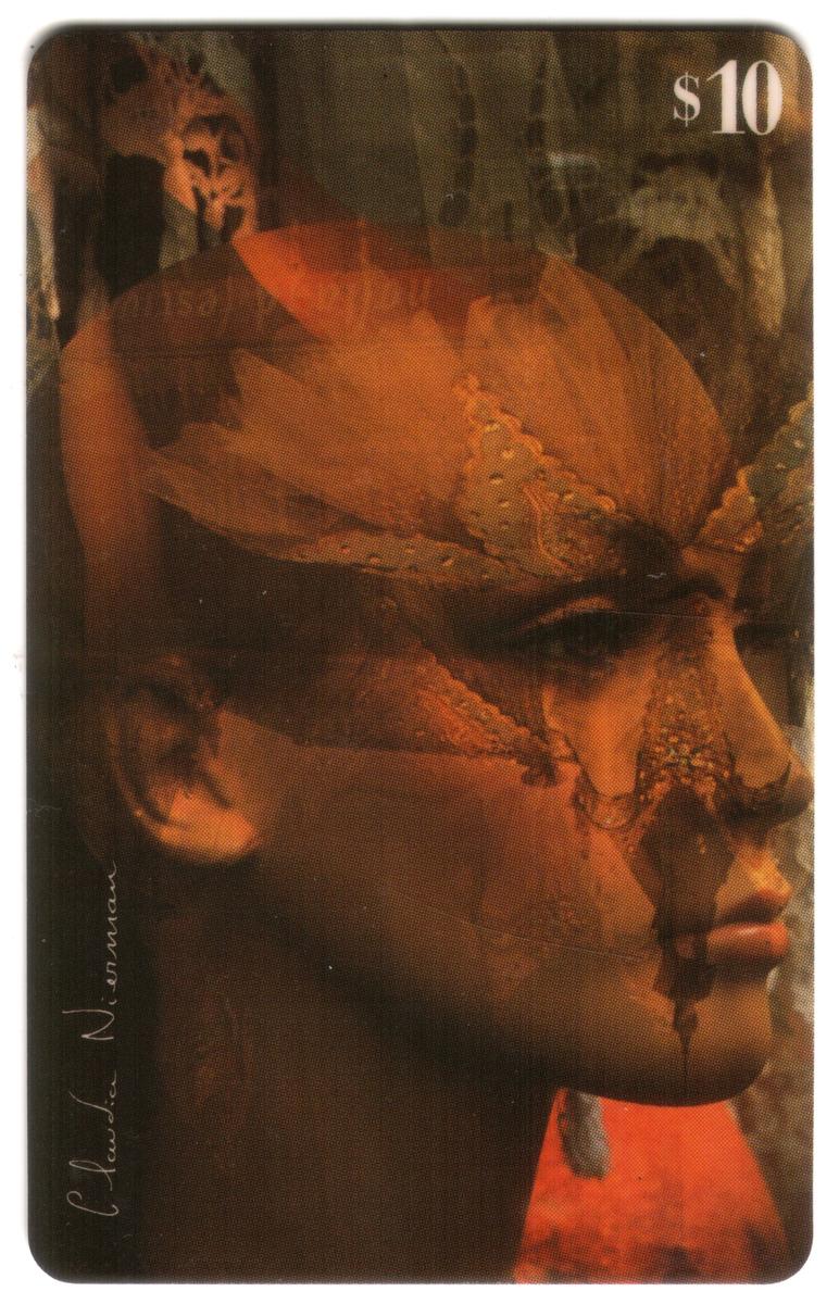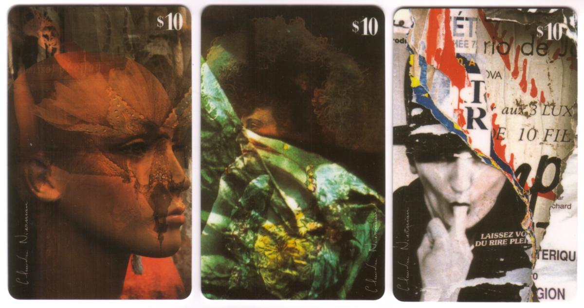 These three collectible phone cards each feature artwork by Claudia Nierman, presented as a complete set of three under Teleworld International with a $10 value on each card.