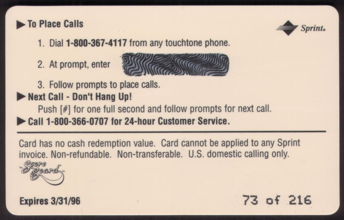 Since we have the world's largest inventory of USA phonecards for collectors, you will not necessarily receive the identical serial/batch/PIN number that we have scanned/pictured.
