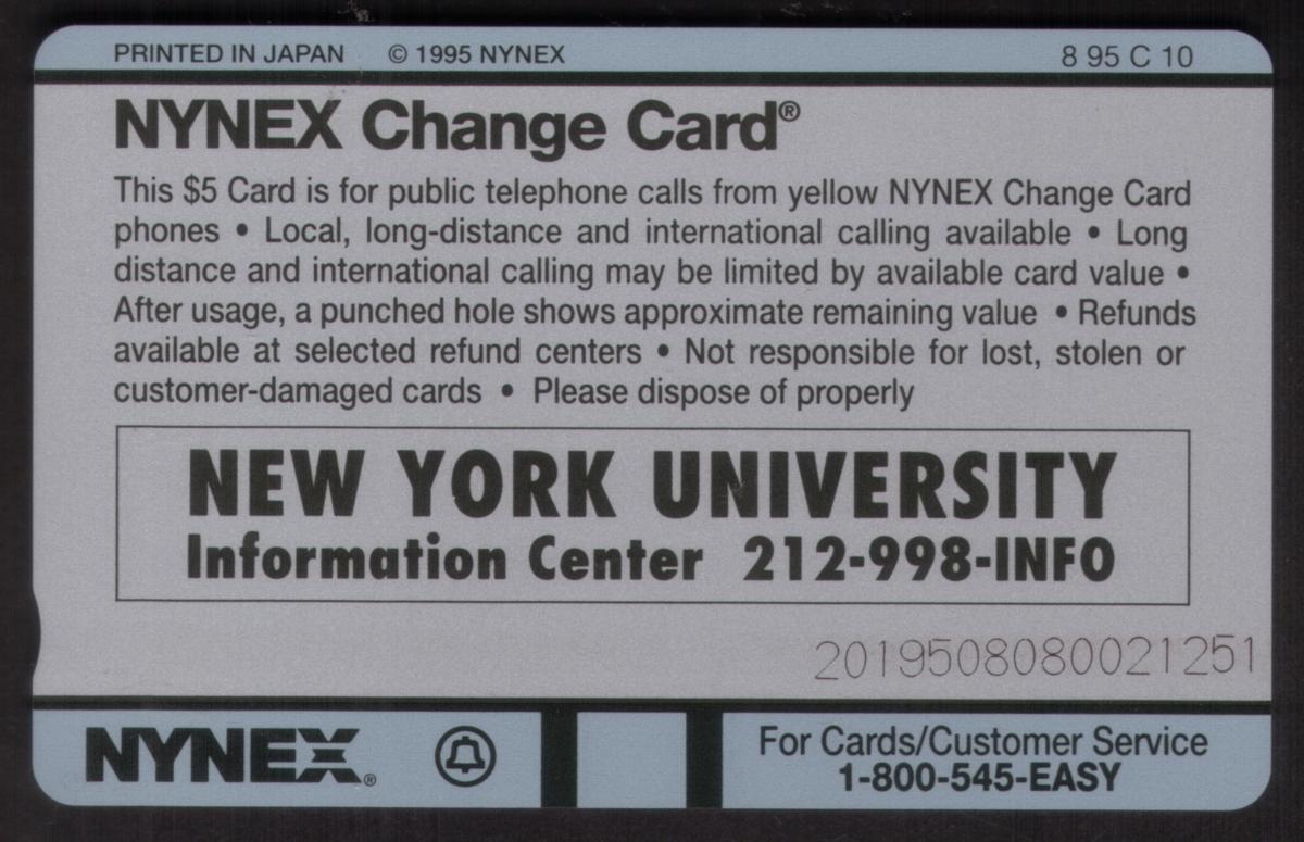 This collectible is tied to the themes of universities, colleges, and education, featuring the NYU bobcat mascot and the NYNEX phone card branding.