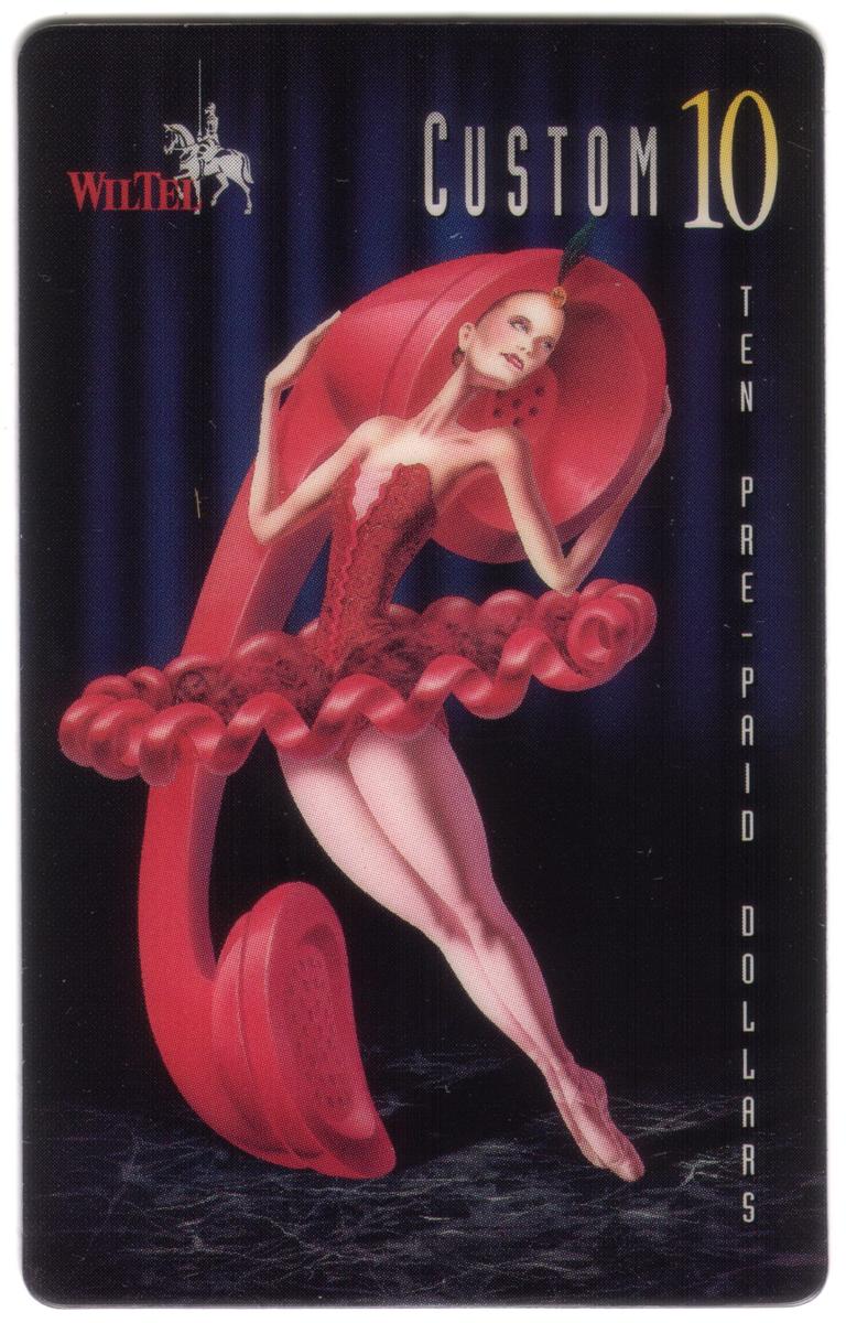 The overall layout of the card balances the striking image of the dancing ballerina with the graphic elements indicating the value and telecommunications company involved. The combination of the dancer and the telephone handset visually aligns with the theme of communication and art, conveyed in a fantasy style consistent with the card’s creative design.