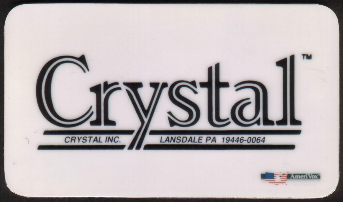 The card highlights the connection between Crystal, Inc., a company based in Lansdale, Pennsylvania, and AmeriVox, dated 1992. The Crystal, Inc. logo appears in a clear sans-serif font, indicating its identity as a corporate entity. The AmeriVox name is positioned on the card, suggesting a partnership or branding association. The overall layout places an emphasis on the logos and textual information relevant to the business card format.